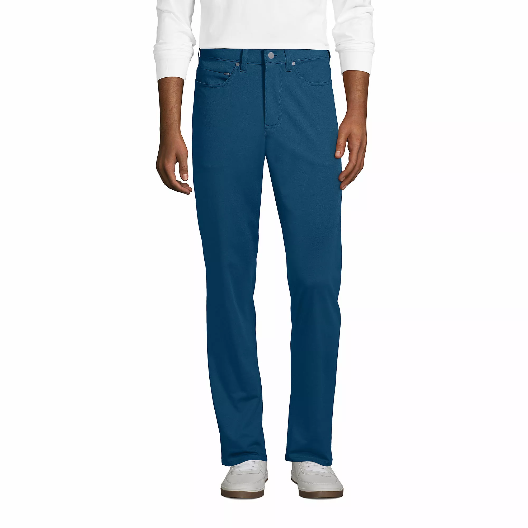 The goal of these active performance 5 pocket pants? Look clean-cut and polished in the comfiest pants possible. So we made them with smooth twill weave fabric, then added a hint of stretch, allowing you to move unrestricted without the knees becoming baggy by the end of the day. We topped them off with moisture-wicking and quick-drying finishes, so they keep you looking and feeling cool.Â