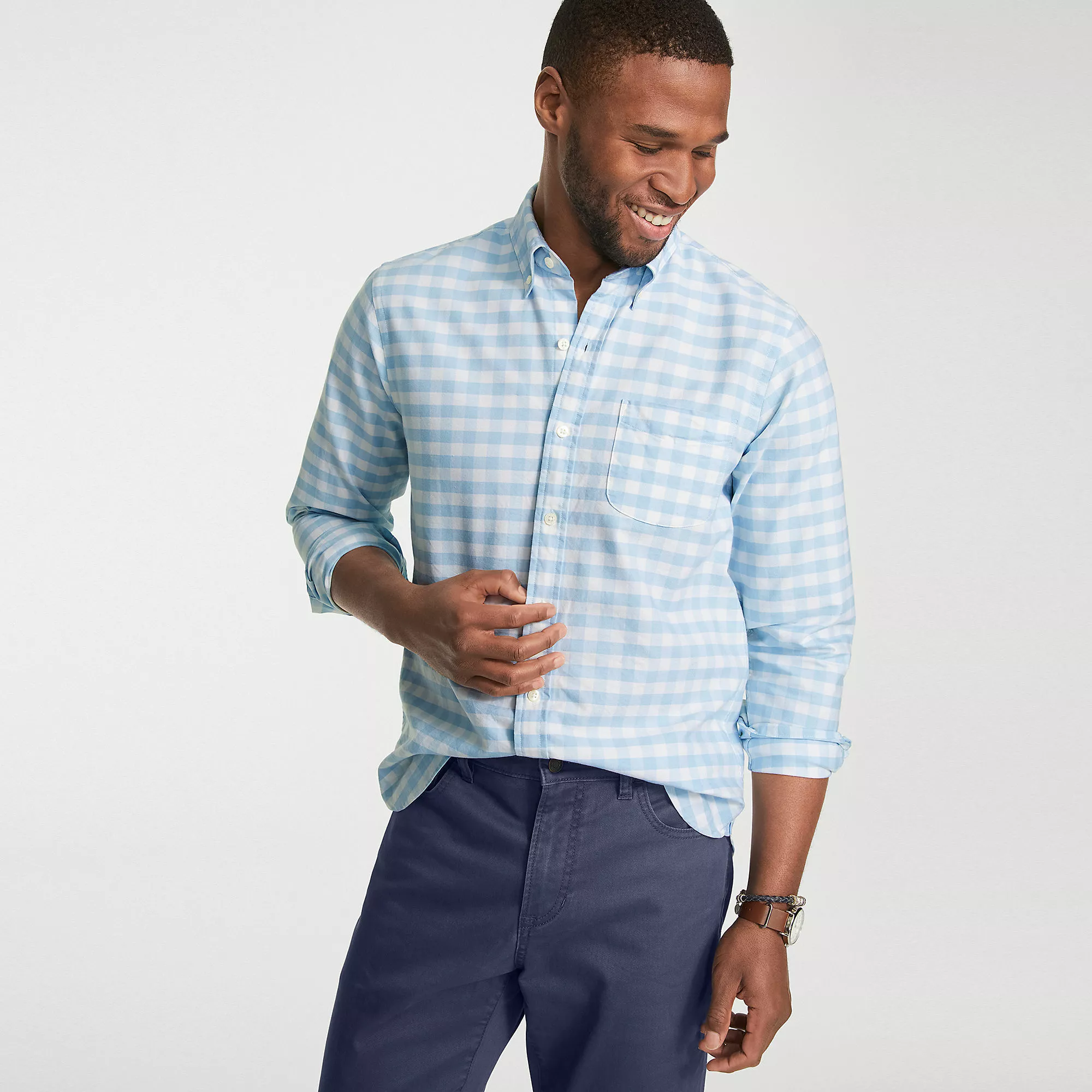 This is Oxford cloth done right. We developed an exclusive weave using thicker yarns to produce a heavyweight fabric true to the Oxford heritage. You’ll notice the substantial feel right away, and appreciate the way it gets naturally more comfortable wash after wash. Speaking of washing, we love the way this shirt looks right out of the dryer. Casually unpressed to give you an easy-wearing style without dragging out the ironing board (but we won’t hold it against you if you do). We’ve tailored it nicely as well, with a classic button-down collar, box pleat back yoke, adjustable two-button cuffs, rear collar button and locker loop.