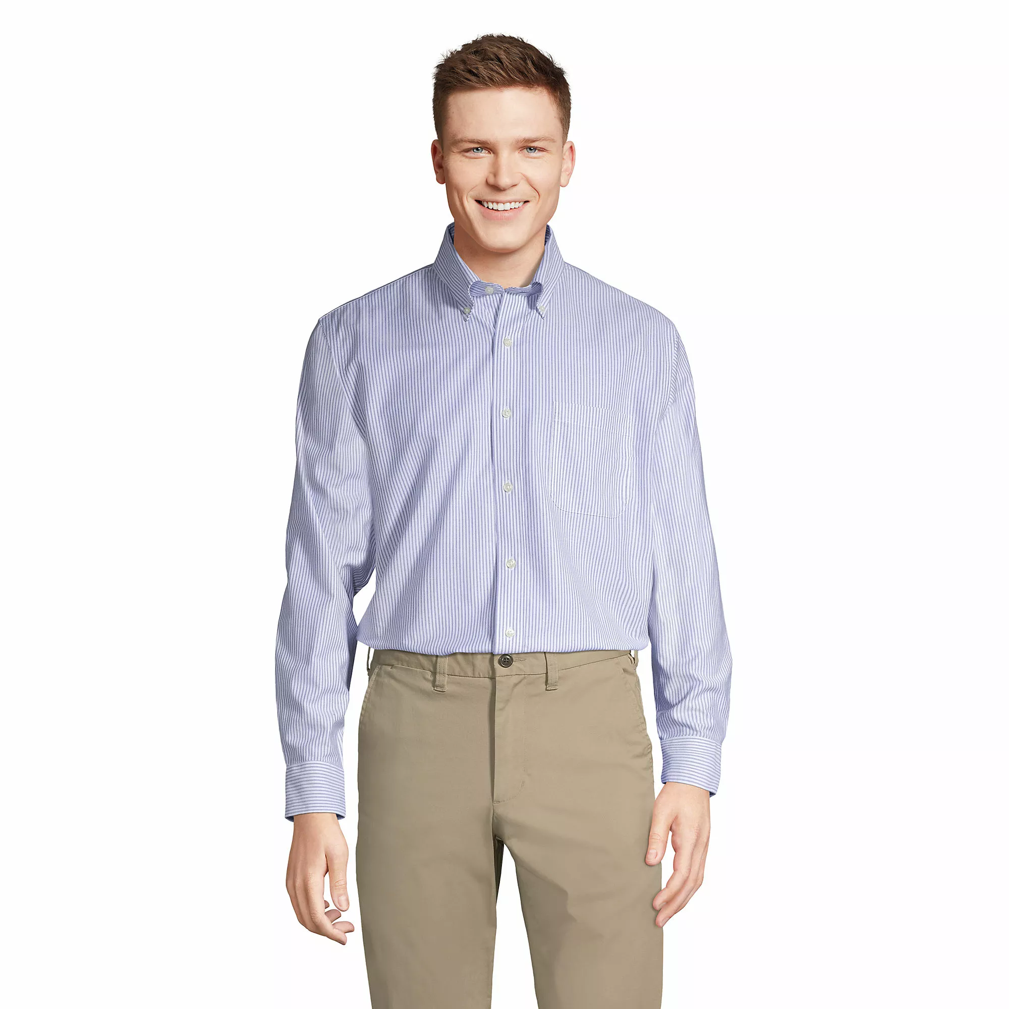 With our newly improved back-and-better-than-ever Tailored fit option (more refined and slimmer throughout the sleeves & body without feeling restrictive), this No Iron Oxford may now truly be the best-made, longest-lasting No Iron shirt available. And it’s surely one of the softest, thanks to American-grown Supima® cotton. We also sew gussets at the side seams for untucked wear, and — it’s subtle, but significant — two pleats on the sleeve (rather than the former three) for less blousiness. As always, the fabric stays smooth for 30 washes without the touch of an iron.