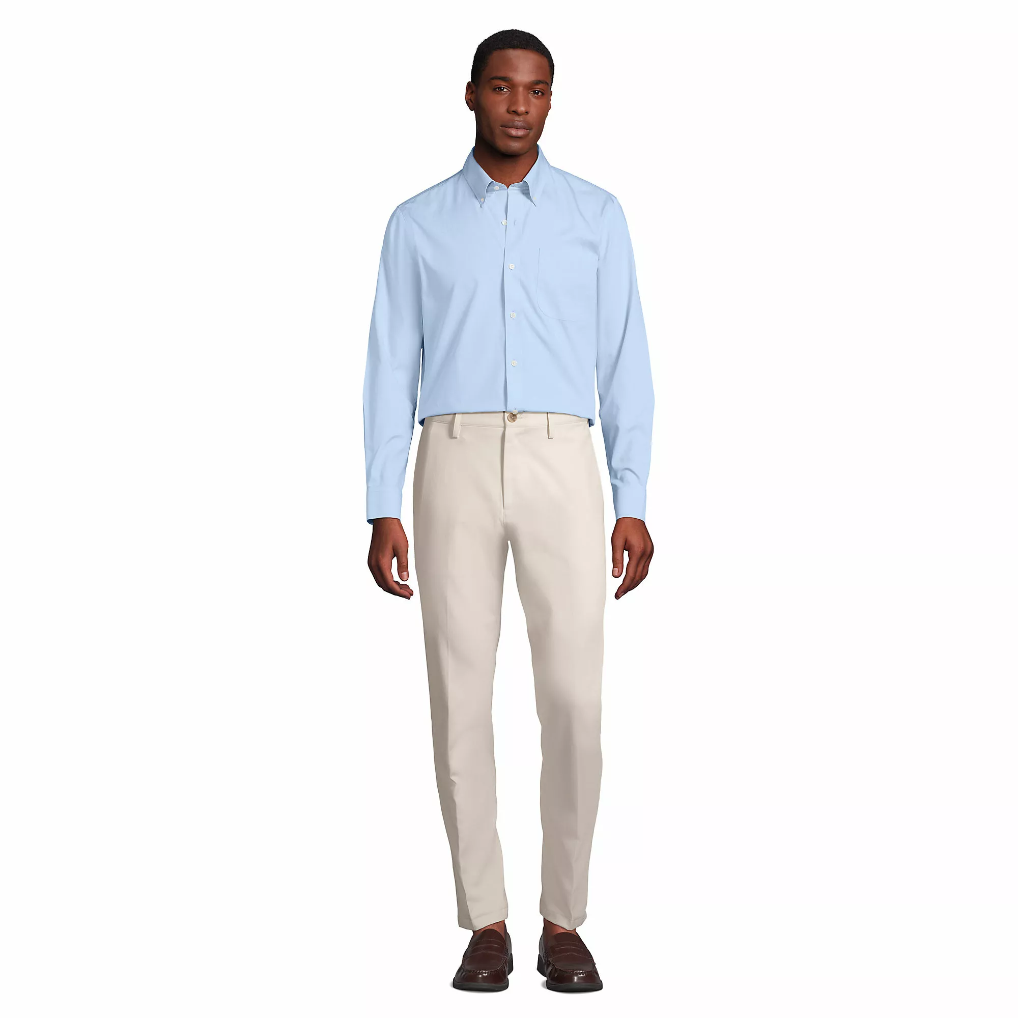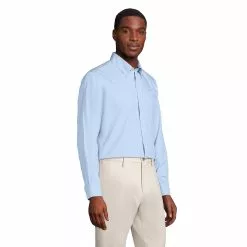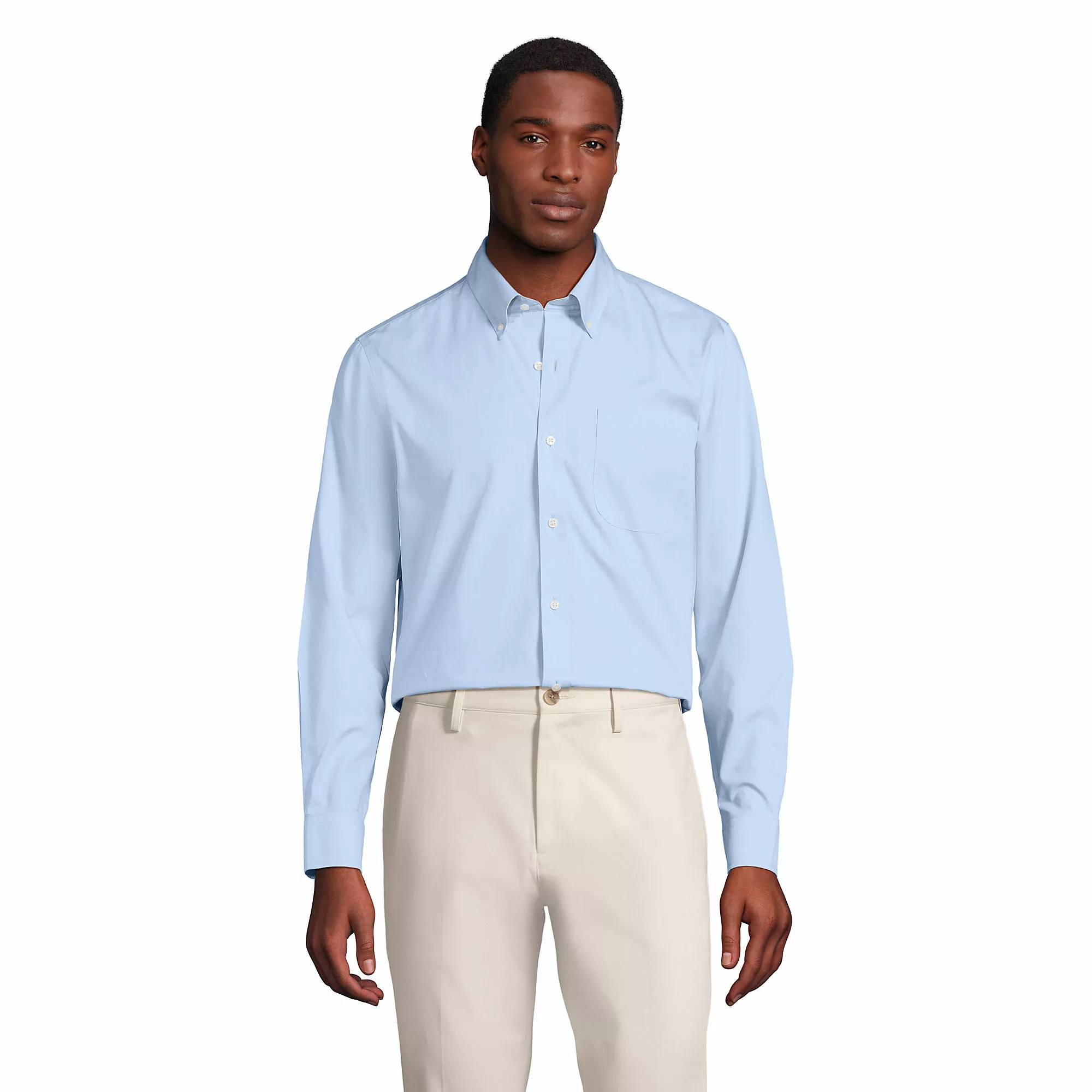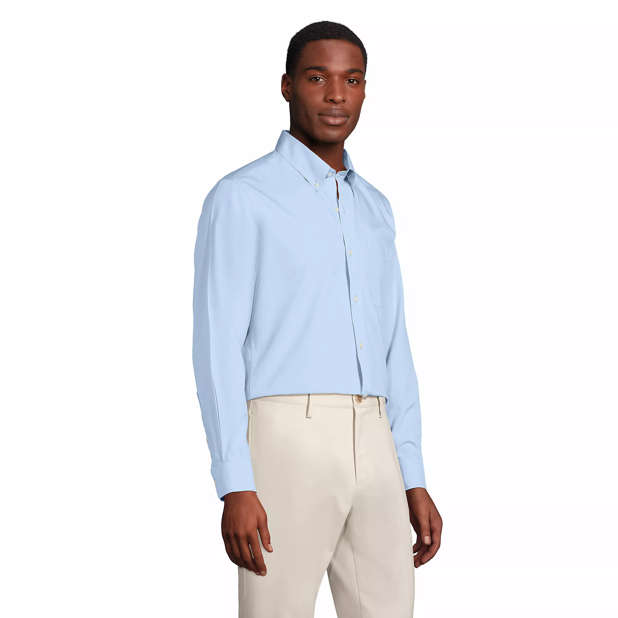 Starting with our newly improved, back-and-better-than-ever Tailored fit option: more refined and slimmer throughout the sleeves & body without feeling restrictive. Moving into the fiber, this No Iron Pinpoint is pure Supima® cotton – the top 3% of the U.S. cotton crop. This yarn has the same ultra-fine “80s” width as our previous shirt, but today, with fewer fiber “ends” thanks to Supima’s exceptional length, it’s smoother and stronger than ever. Finally, it’s time to talk about the finish. Along with the no-iron finish that keeps this shirt looking just-pressed all day, we built in a moisture-wicking feature which lets you feel as cool as you look.