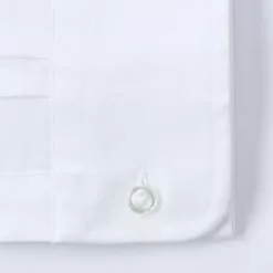Ultra-fine pure cotton yarns weave a fabric that feels wonderfully silky. A perfect complement to your dress pants and ties. Tailoring details include a true English, four-piece, mitered, split back yoke with shoulder pleats. Single-button cuffs and gauntlet buttons trim the sleeves. All with the no-iron finish that keeps you looking good all day long.