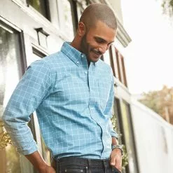A few of us lucky ones here in the office got to wear test this shirt. The verdict? Let’s just say that no one wanted to give theirs back. Pure cotton twill fabric is lightly brushed for softness, while the no iron finish ensures crisp looks. (You’re the only one who needs to know how comfortable you are!) Classic sport shirt features include single chest pocket, buttondown collar, adjustable cuffs.