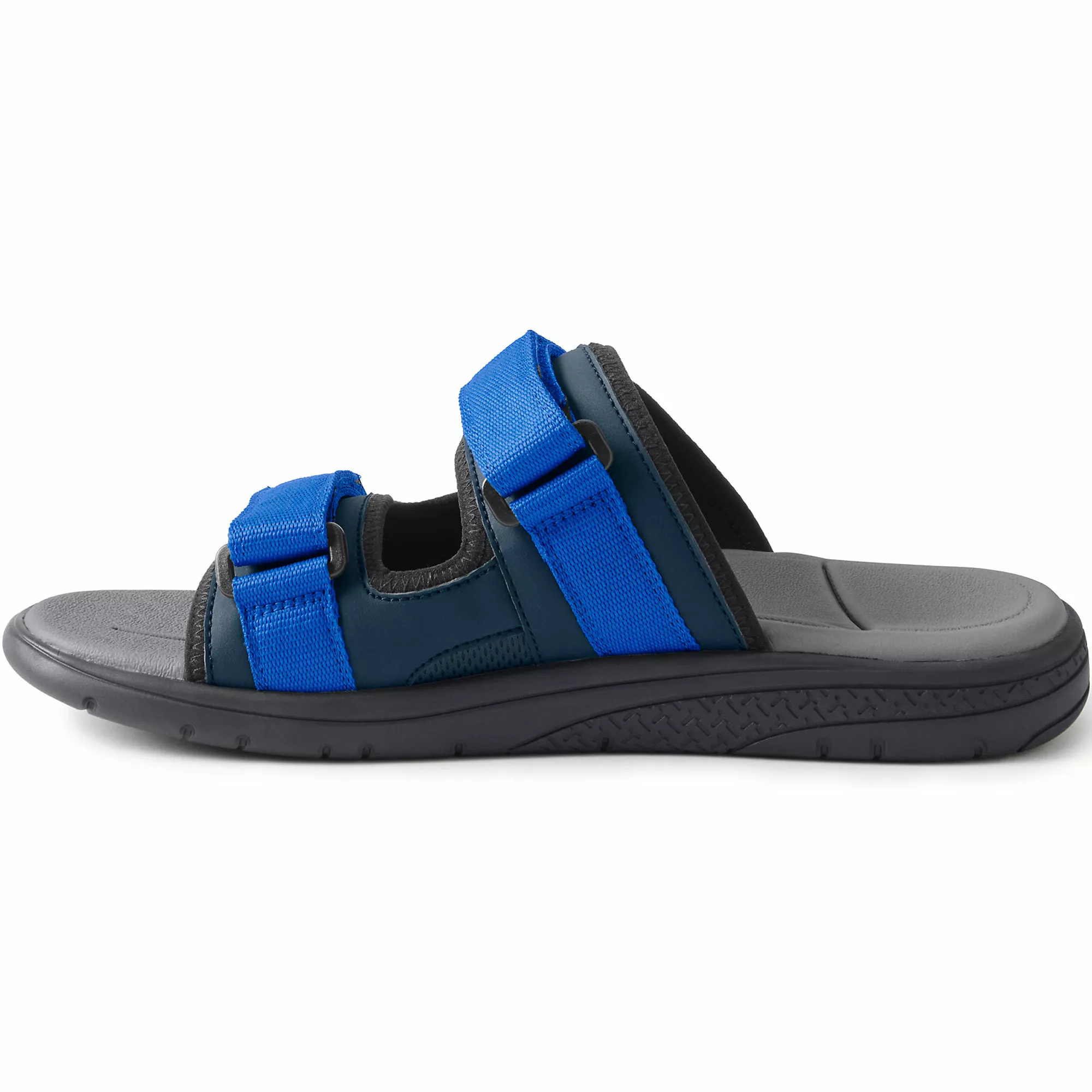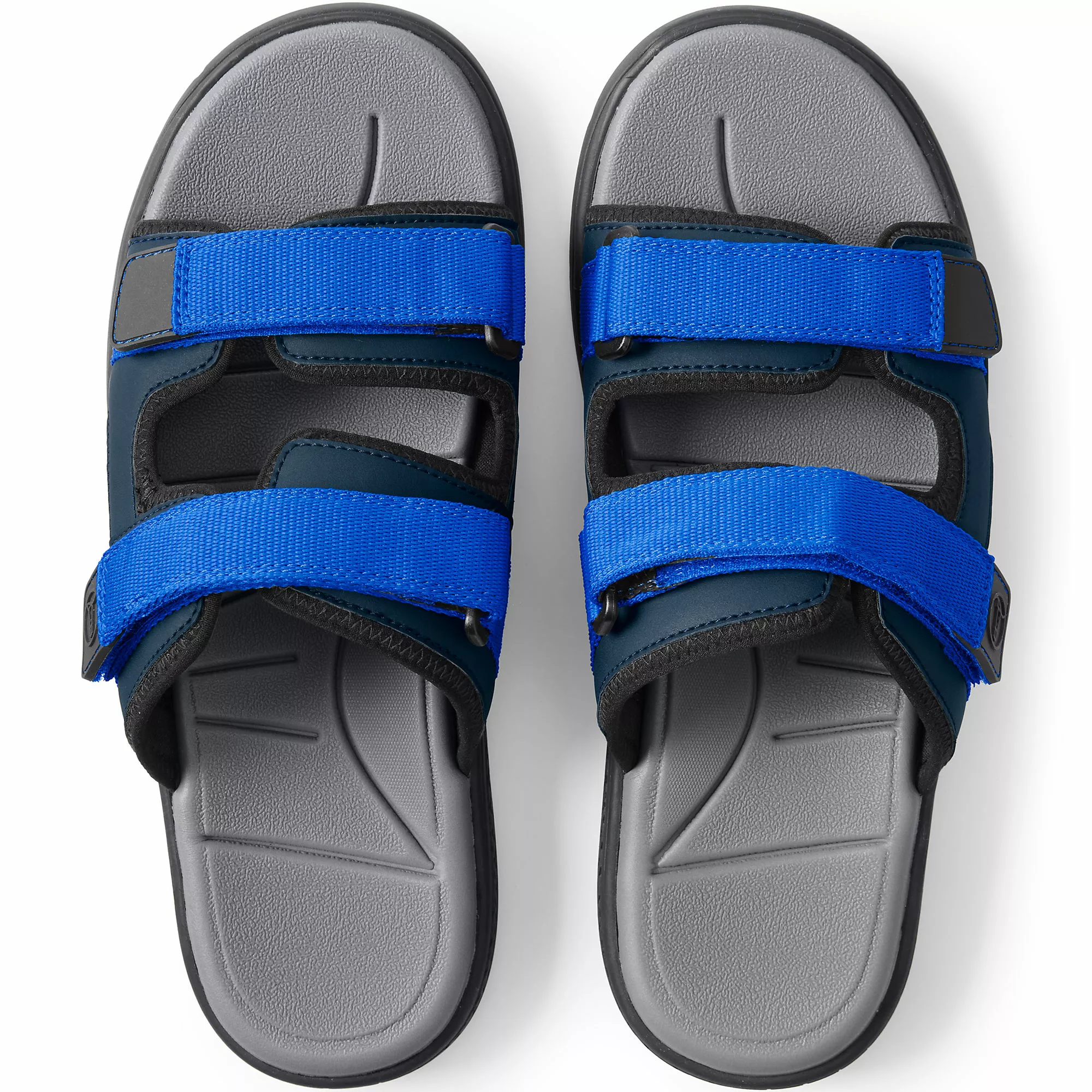 Our water slide sandals have an easy slip-on fit with adjustable hook-and-loop straps. The mesh and manmade upper are fast drying, and the grippy rubber outsole helps ensure there’s less slip with your slide, too. But with style like this, you can wear these for just about any casual outing, from community garden day to neighborhood BBQ day.