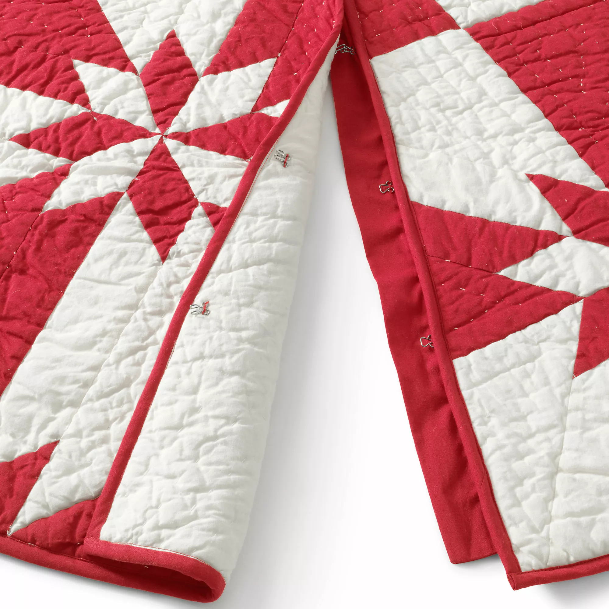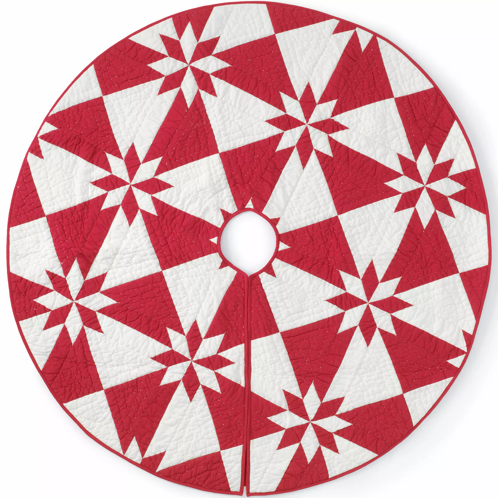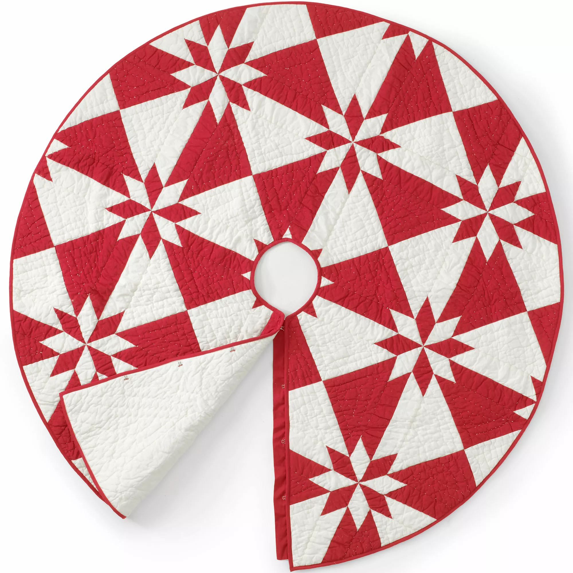Our patchwork Christmas tree skirt looks just like a beautiful holiday quilt – and will lay a festive foundation for all your presents. The fabric is pure cotton, treated for brighter, longer-lasting color and resistance to shrinking and tearing And let’s not forget the best part of any tree skirt: it catches all those pesky needles, so you won’t be picking them out of the carpet till the 4th of July. All with secure hook and eye clasps underneath to keep it in place.