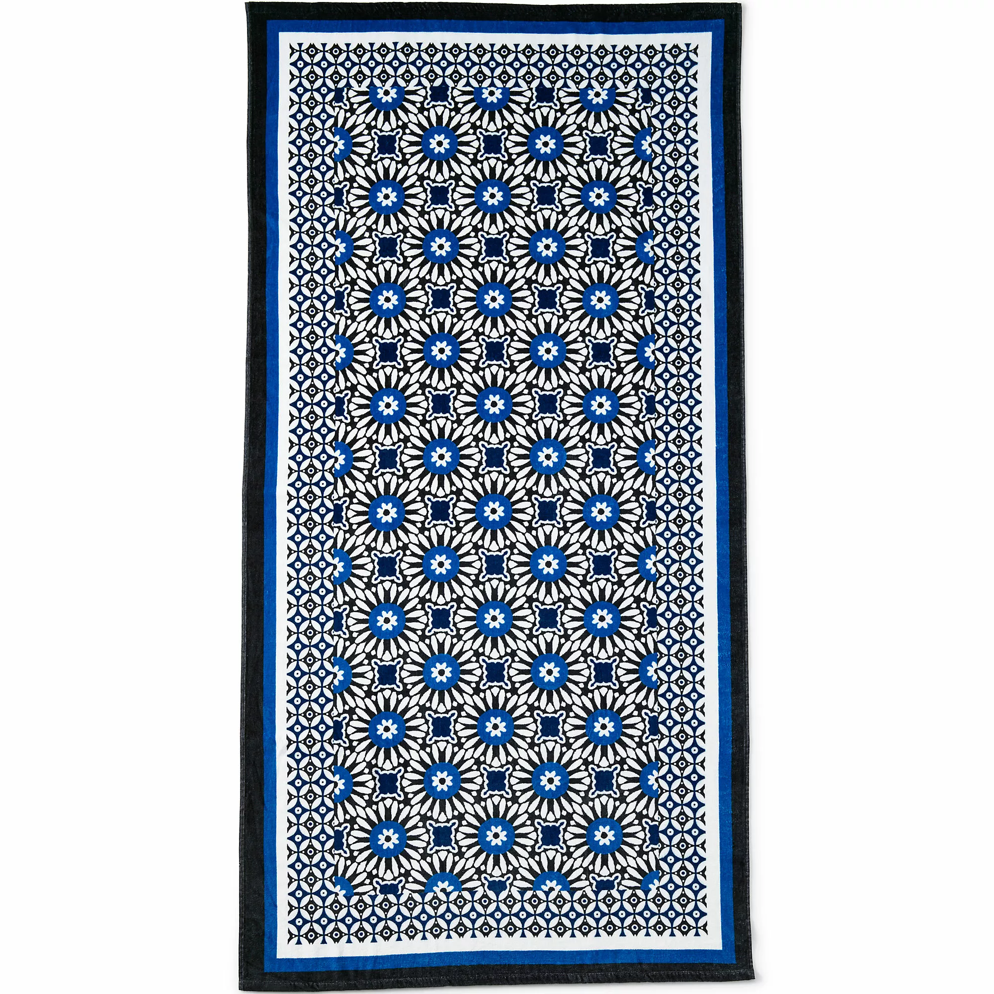 Help yourself to some sprawling beachfront property; our 78”-long towel gives you a foot and a half more length than the standard and 9″ more width. So you have more towel to wrap up in, dry off with and stretch out on. Durably crafted hems and edges won’t unravel. The pattern on the soft velour front reverses to white terry loops.