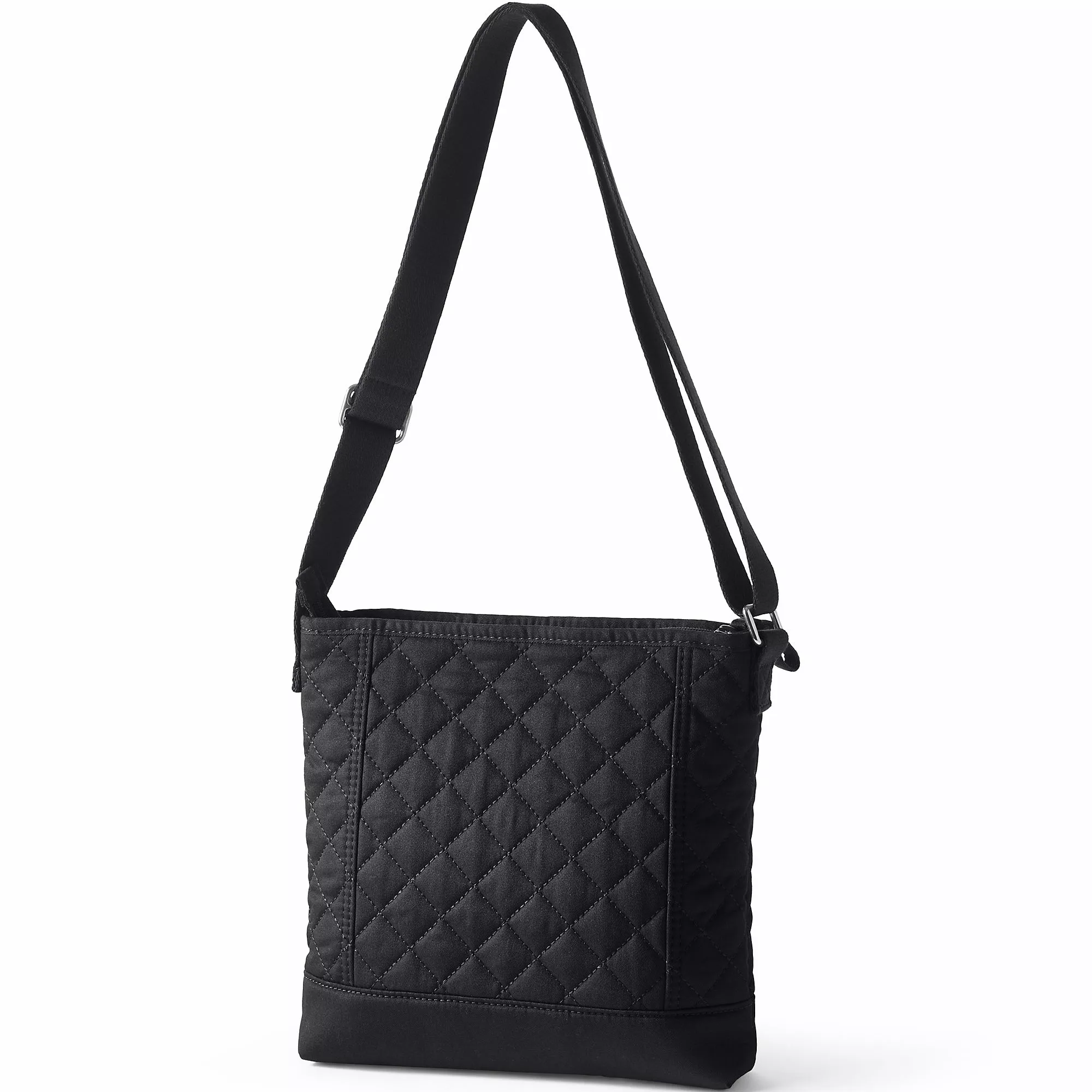 You keep loving them and we’ll keep finding ways to make bags that are sturdy and cute, too. Not too big or too small, our attractive quilted twill bag is also lightweight. The adjustable crossbody shoulder strap lets you create the just-right strap length while you shop or travel hands-free. A sturdy zip top keeps items safe and secure. Plus, there’s a convenient exterior pocket, two handy interior pockets and a key ring to keep your things neat and organized.Â