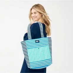 Trekking your essentials to the shore just got better thanks to this packable canvas tote. Not only does it look the part, it’s the perfect size for when you want to lounge in the sand and only bring your sunscreen, water bottle, a good book, or wallet. The tote is flexible-yet-sturdy 100% cotton canvas. The handles are reinforced for strength. When it’s time to pack it in, the whole tote lies flat for easy storage.Â