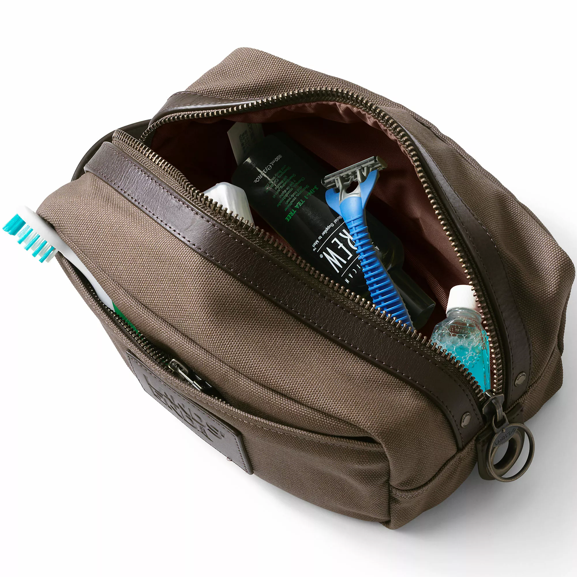 Built to last with a sturdy waxed canvas exterior, strong 210D polyester lining and rich leather accents. This travel kit features a zipper pull that hearkens back to vintage Lands’ End bags – plus a build and good looks that live up to the name. Use it to stow essentials on the counter and toss it right into your carry-on when it’s time to move out.