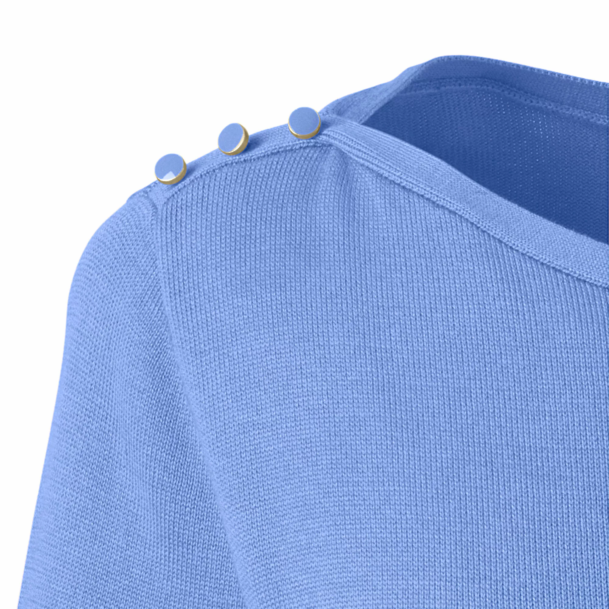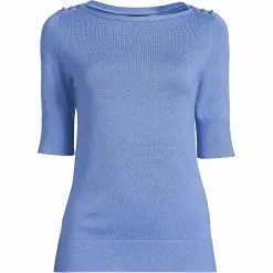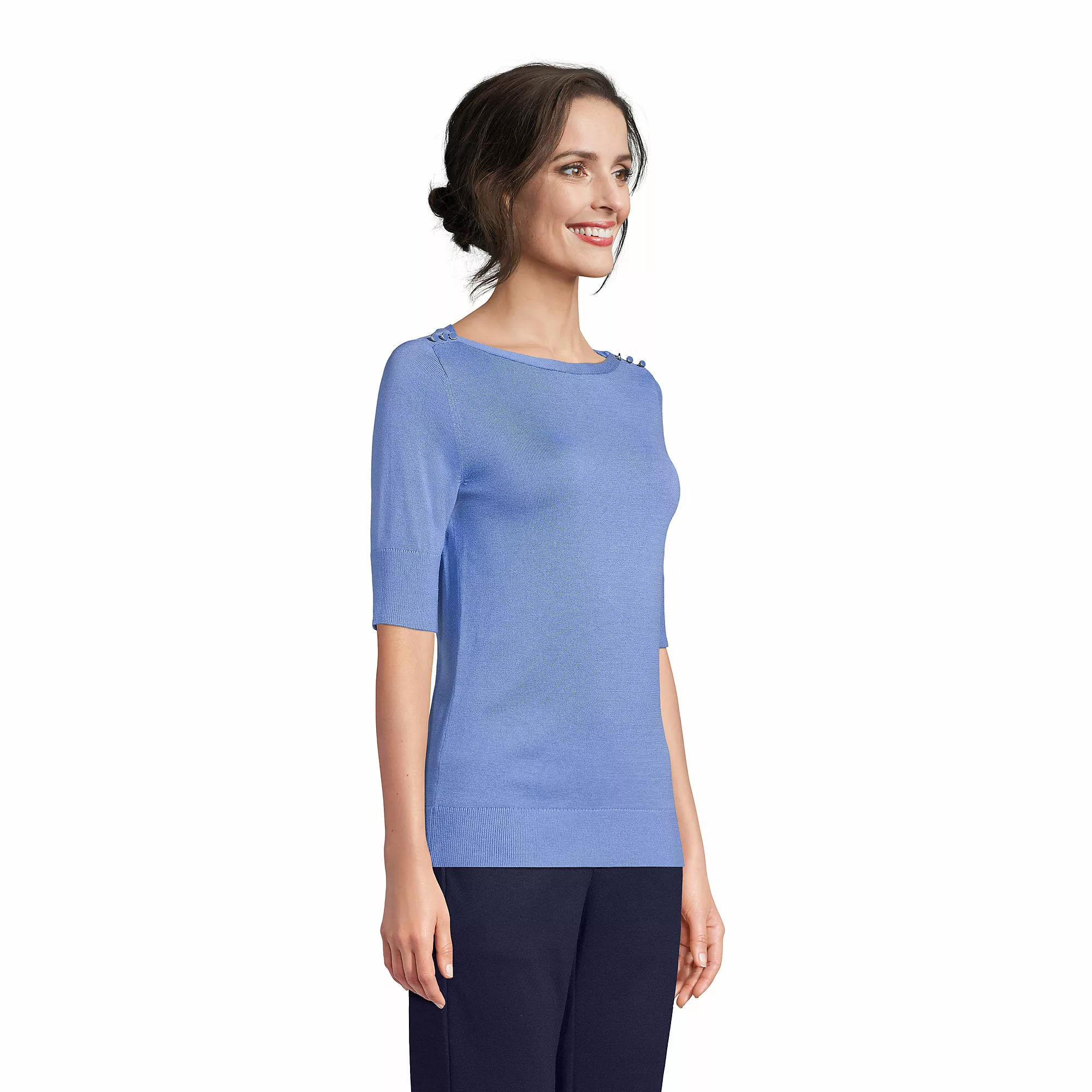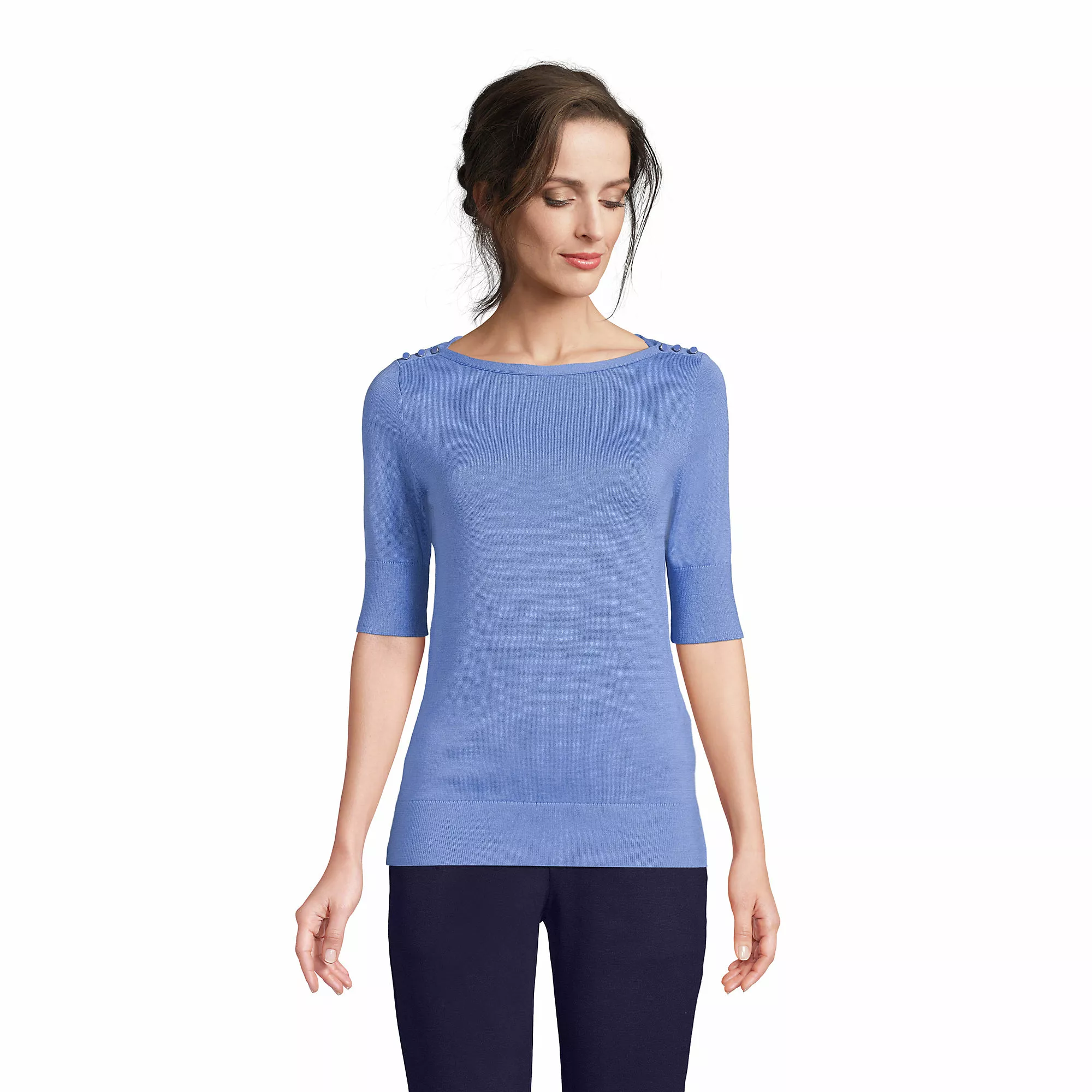 Made to wear any time of year, this elbow sleeve sweater is a stylish addition to your wardrobe. A high-twist yarn in a smooth blend helps it look beautiful and feel great all day. And, this button shoulder boatneck will hold its shape and color wash after wash.