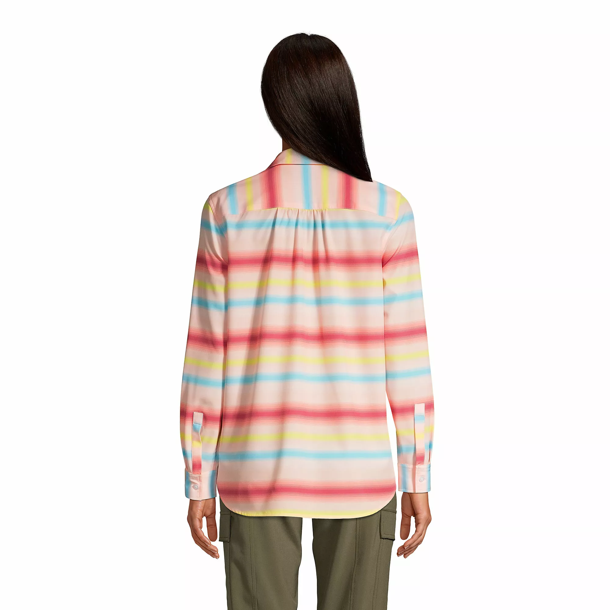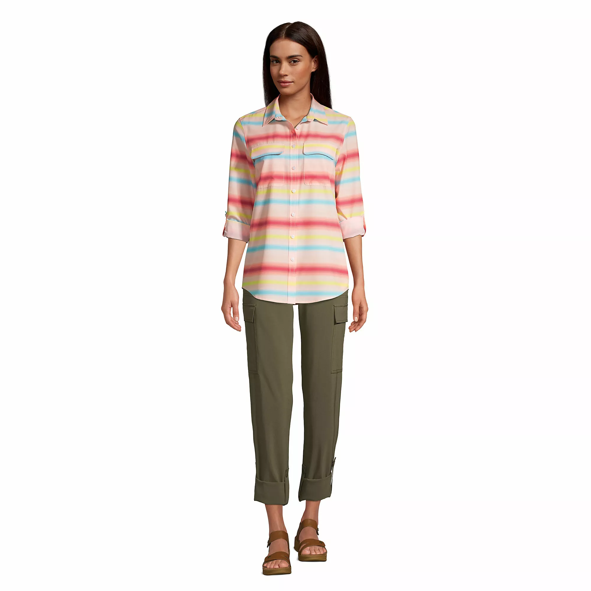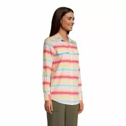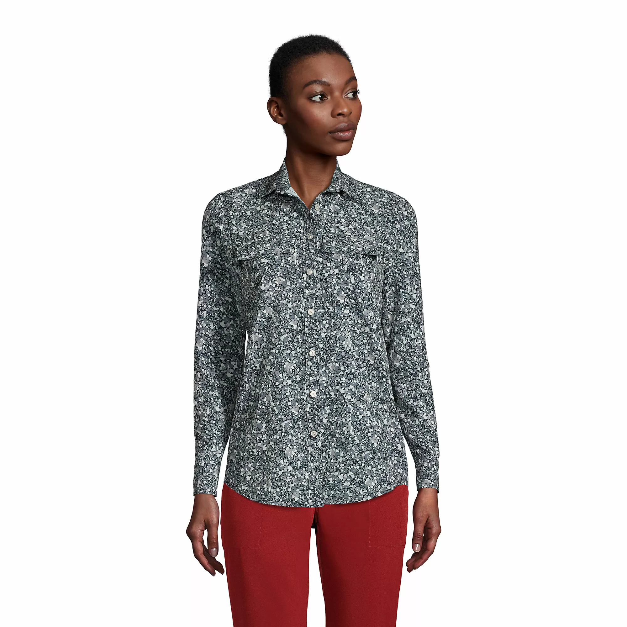 This travel boyfriend tunic gives you the length and look you love, no borrowing required. Give it a French tuck. Roll up the sleeves with convenient button tabs. Wear it buttoned up or open and layered. With so many ways to wear — plus stretchy, moisture-wicking fabric — you can bet this won’t spend much time on the hanger.