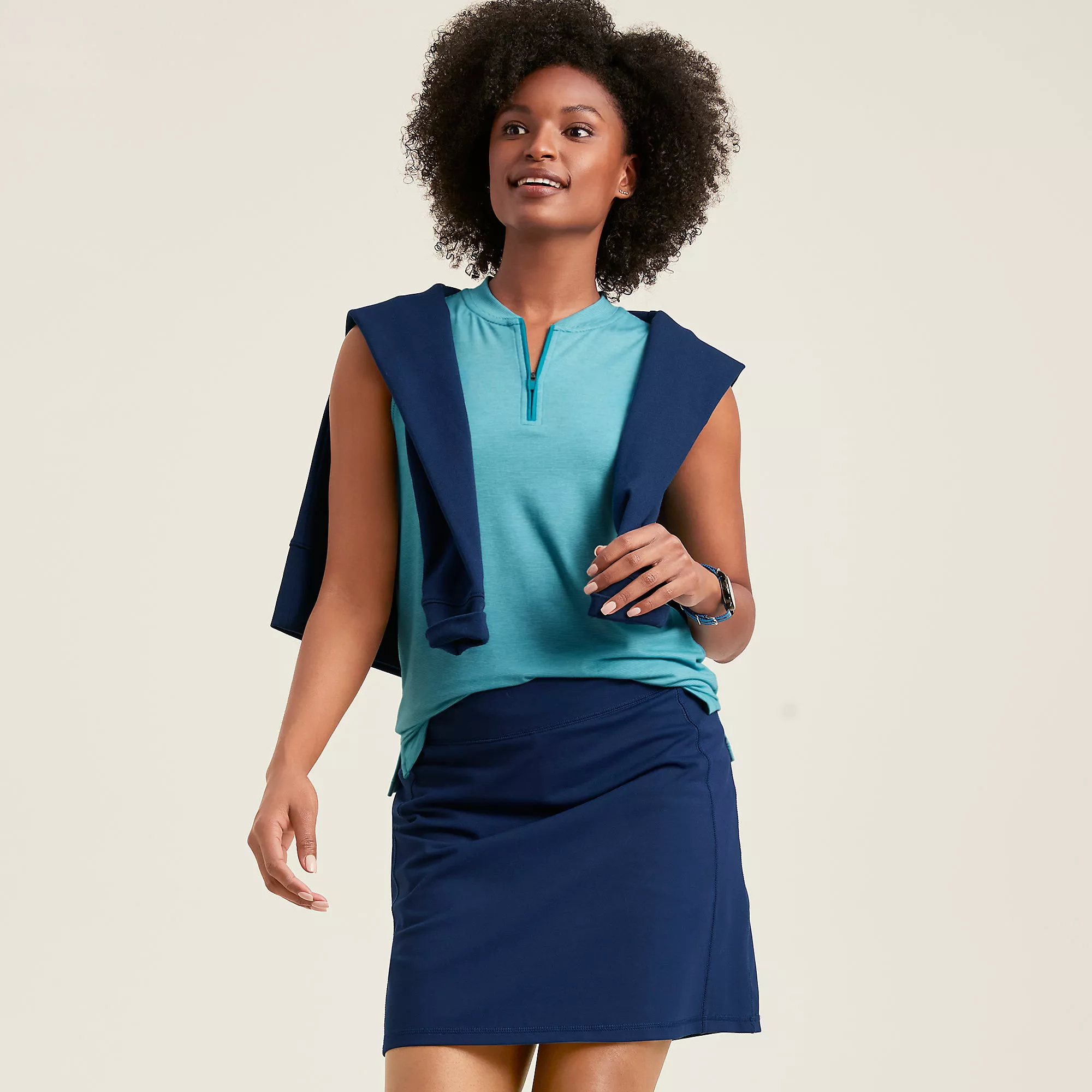 Our skort lives for the love of the game. However, it plays just as nicely in less competitive settings. This skort glides on with ease thanks to its fully elastic waist. You’ll be able to move as you please with the confidence of knowing that attached mini-shorts have you covered. Plus, with a hidden interior and an invisible back pocket, all of your essentials are always right there with you. No fanny-pack needed. Â
