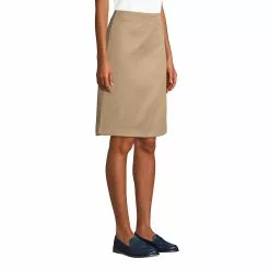 Looks like a skirt all the way around with hidden knit shorts for comfort and coverage. Fashioned with a hidden side-zip entry for a neat appearance in front. In back are darts for a bit of shape and a vent for moving room. Easy-care 60% cotton/40% polyester. At-the-knee length.