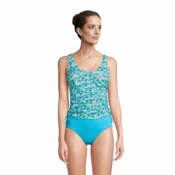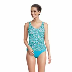 This v-neck tankini top features ultra-flattering styling (see that chic shirring on the sides?) and a supportive underwire bra. Adjustable straps and side ties ensure a comfortable, just-right fit. Longer or shorter? It’s up to you. UPF 50 means you’re protected from harmful rays and chlorine-resistant fabric ensures this top keeps its shape, season after season. This lighter fabric gives you a little more drape, comfort and versatility, too.