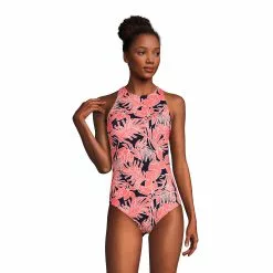 When it comes to beachwear, we have high standards. Pun intended. And this flattering one-piece checks off all the boxes. The high neck style was designed to give you extra coverage – protecting your chest from the sun and helping you avoid any accidental slips out of your suit. The shelf bra supports and shapes while the stylish shirring on each side camouflages and flatters. And the high cut leg? Strategically designed to elongate your legs.