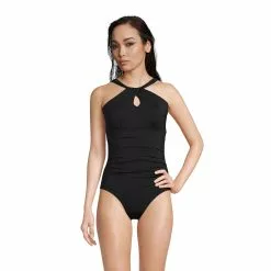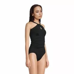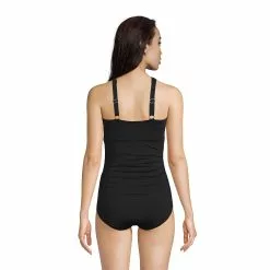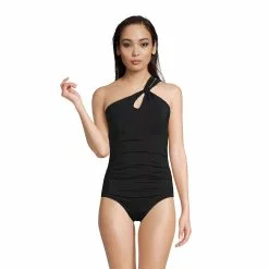 The adjustable straps can be worn over one shoulder or as a halter. Either way, this suit is designed to flatter thanks to the stylish shirring around the midsection. Like the rest of our swimwear collection, it’s made of LYCRA® Xtra Lifeâ„¢ spandex so it’s stronger and won’t lose shape use after use. Plus, it’s resistant to chlorine, sunscreen and sweat, and with the built-in UPF 50 it’ll keep you protected from the sun. Â