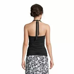 The adjustable halter puts the spotlight on your shoulders, while the square neck offers the more modest coverage you crave. Graceful bodice shirring flatters, while the UPF 50 and chlorine-resistant fabric protect you from harsh sun rays and keep your suit from fading.