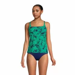 Being a square never looked so good. The simple yet modern silhouette is flattering on every body type. This square neck tankini provides support with a hidden shelf bra and X-back straps. Made of premium LYCRA® Xtra Lifeâ„¢ spandex, a fabric stronger than ordinary spandex, that won’t lose shape use after use and will resist fading from chlorine, sunscreen or sweat. And with UPF 50 built into the fabric, you are protected from harmful rays in and out of the water.  Â