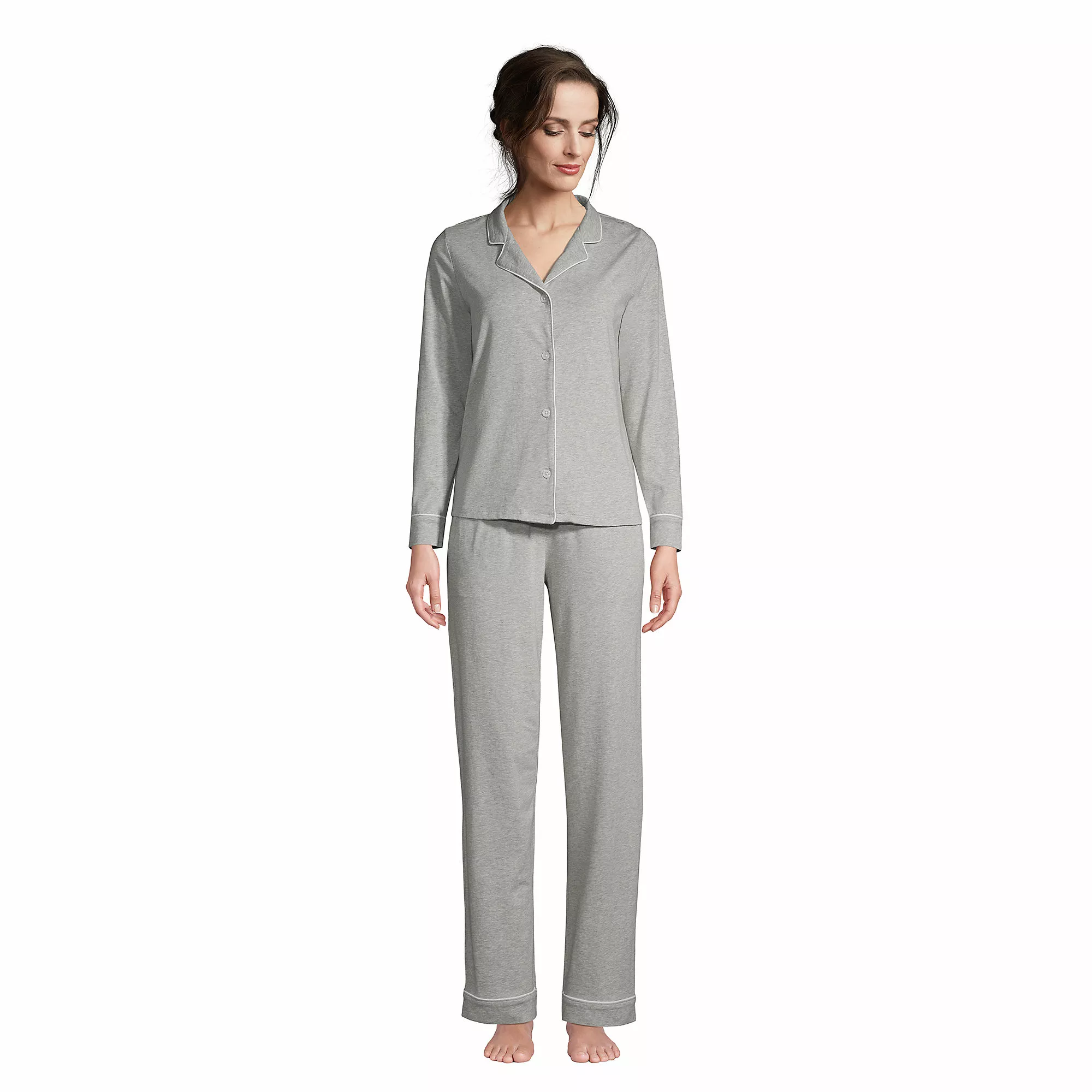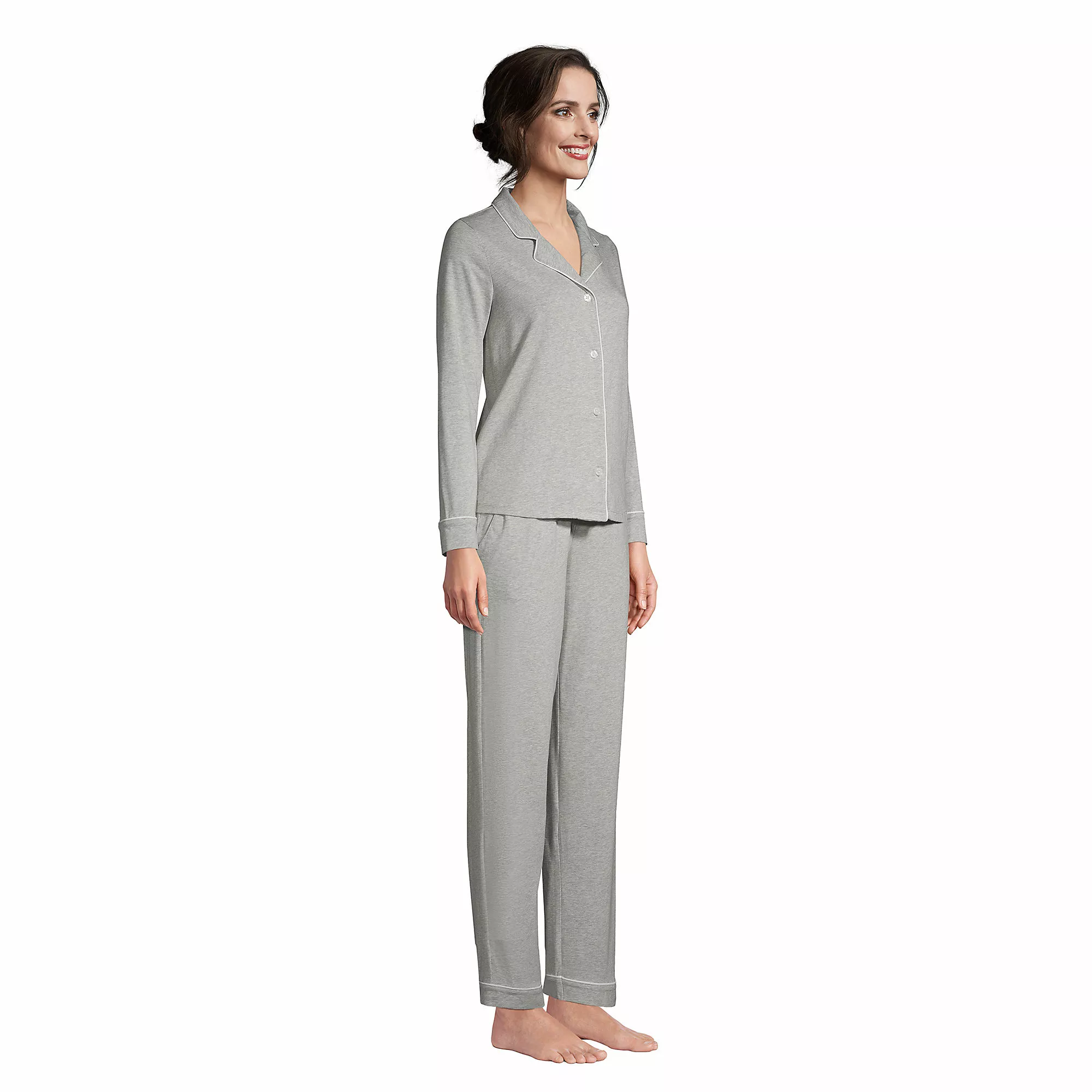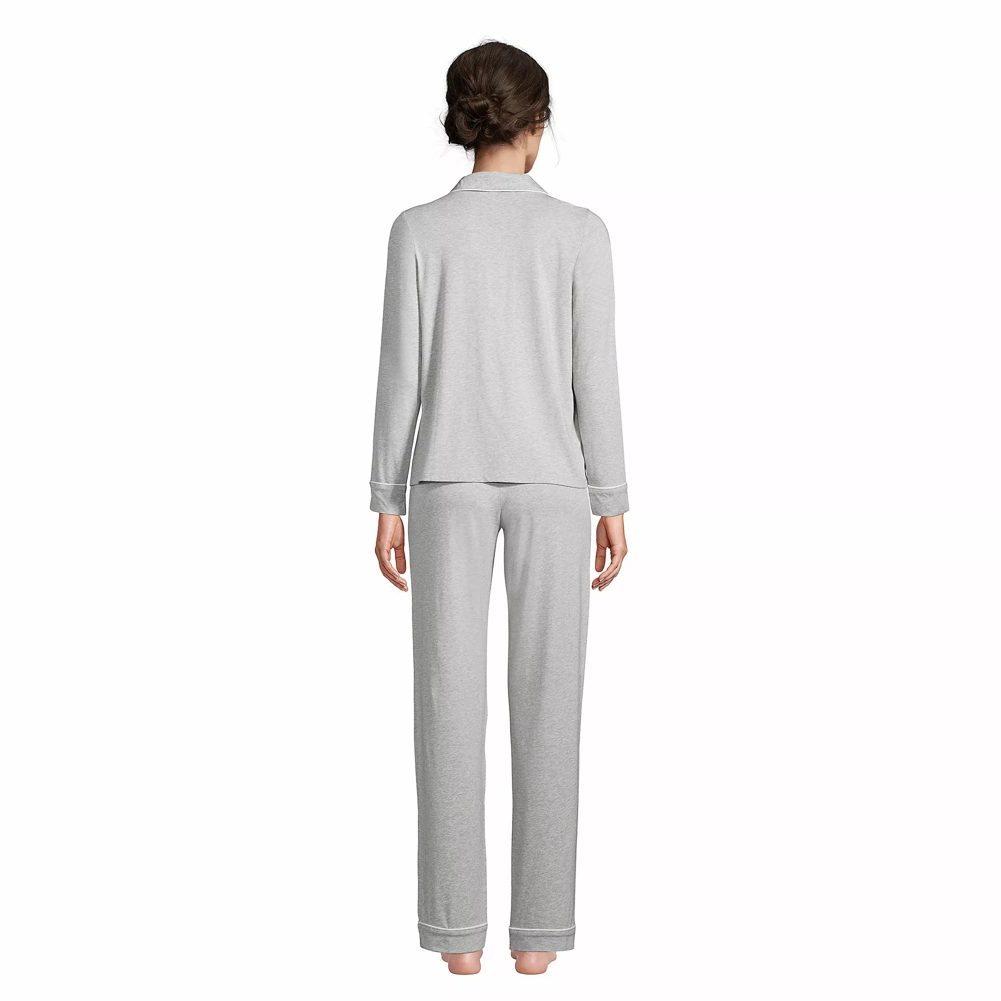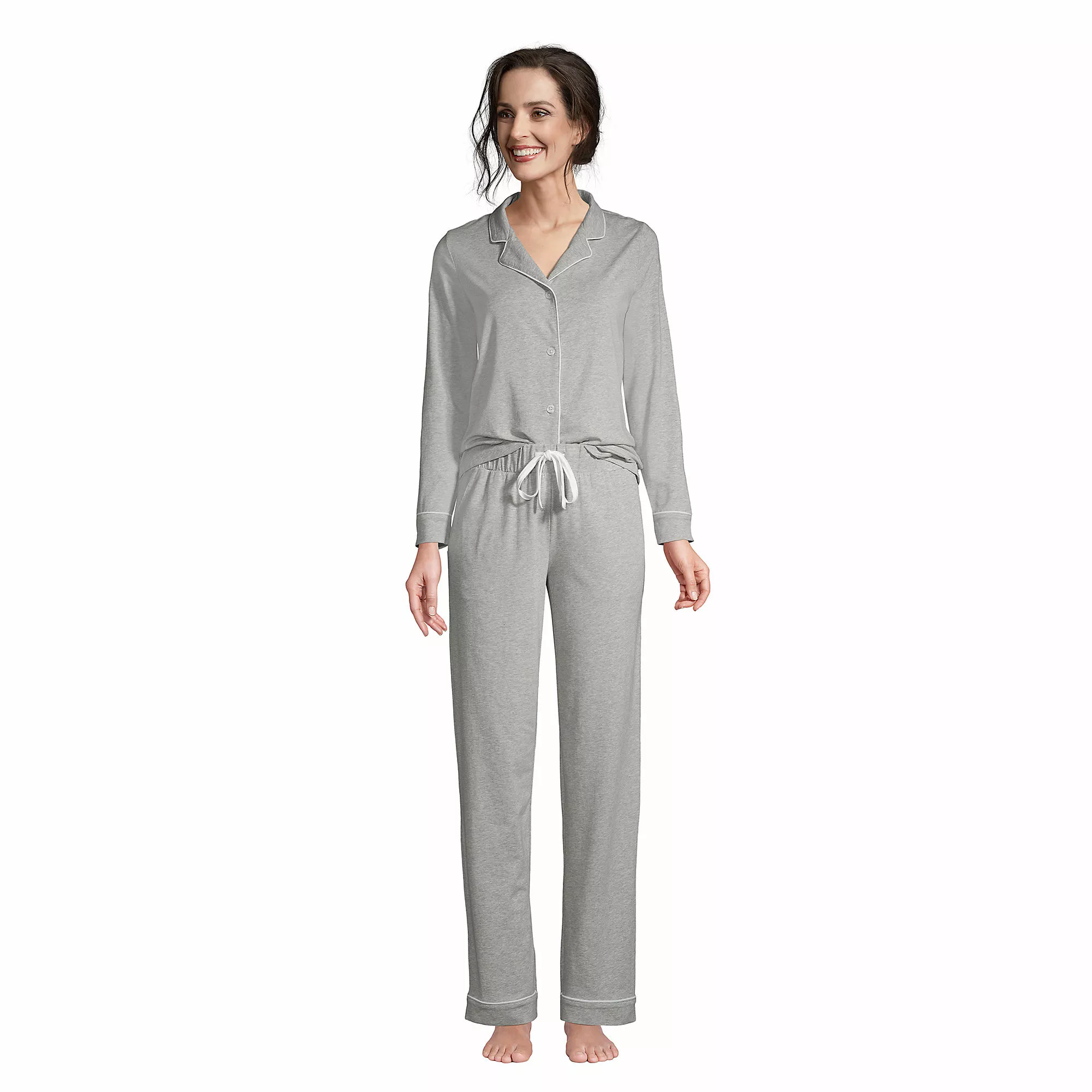 You love our soft and smooth cotton modal in women’s tops, so we’re excited to add this ultra-comfy knit fabric to our PJ collection. This instant mood-lifting PJ set (just look at those colors!) features a full-button top, feminine piping, an adjustable drawstring waistband for a custom fit — and see those pants pockets? Here’s your just-right choice for sleeping and lounging.