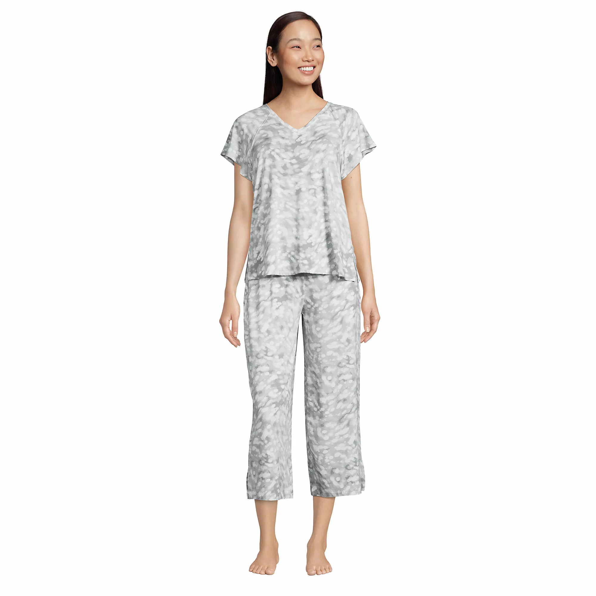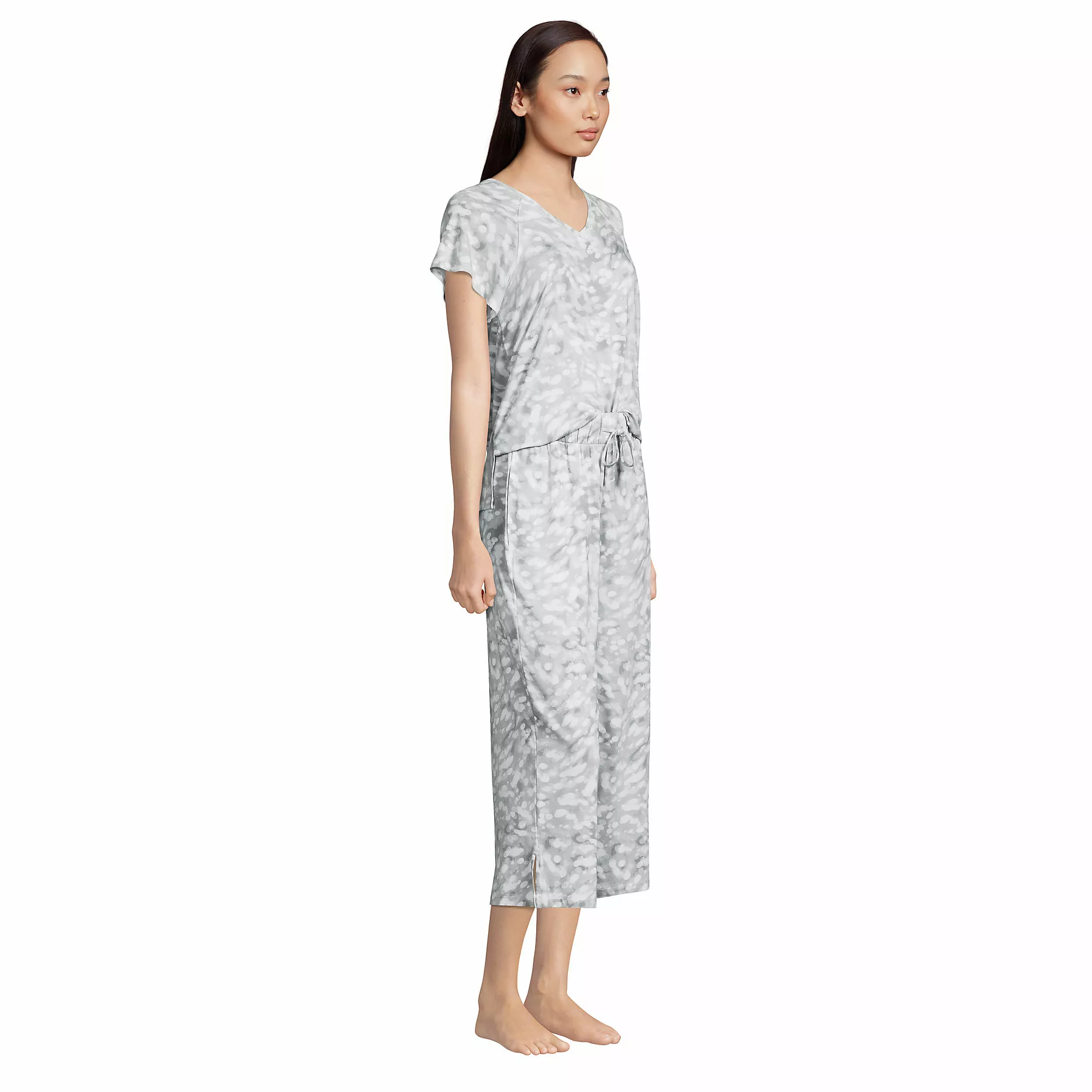 It’s all in the name – lightweight jersey that will keep you cool as you drift off to sleep. The fun flutter sleeves and loose drawstring cropped pants are so soft, you’ll wish you could stay in your pjs all day. Â