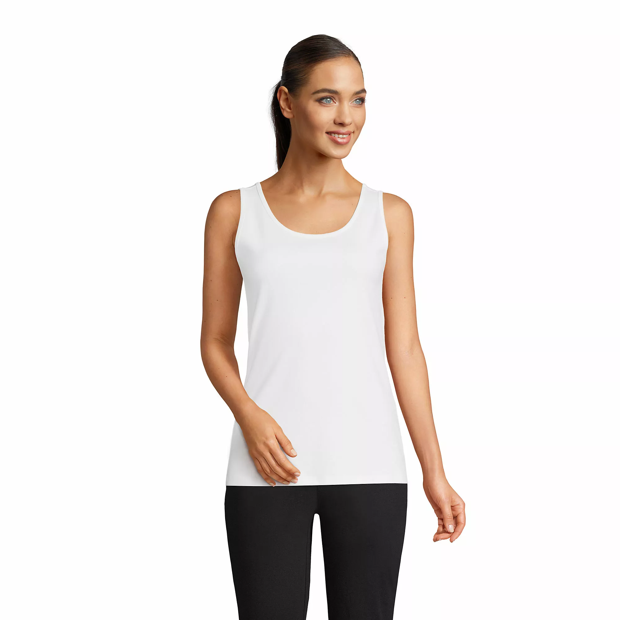 Simple tanks? We think not. These are tried and true, with a soft cotton knit and easy fit. Plus, they offer sensible coverage to cover up those bra straps. Stock up because you can never have too many tanks.