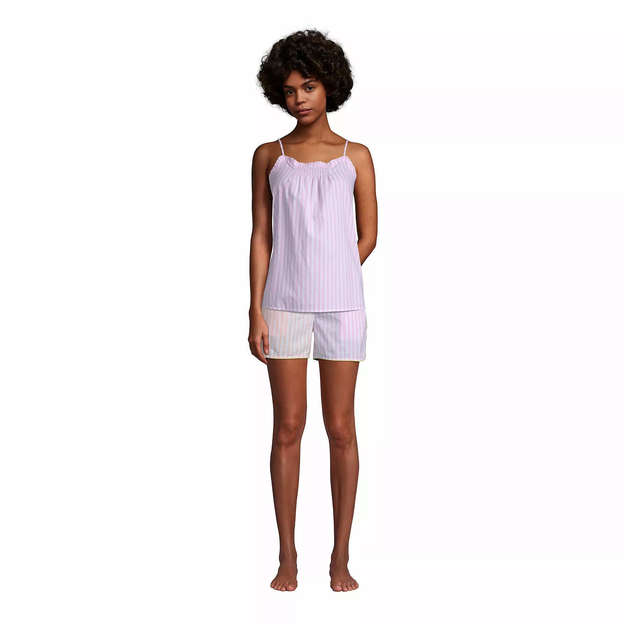 Our delightful poplin sleep cami is a comfy dream come true. This little number is sure to keep you cool thanks to soft, breathable poplin cotton fabric. You’ll feel as if this cami is floating around you thanks to its bottom hem side vents and flowy body. Delicate ruffles and elastic smocking add a feminine touch while keeping everything in place. So cute. So comfy. So you.