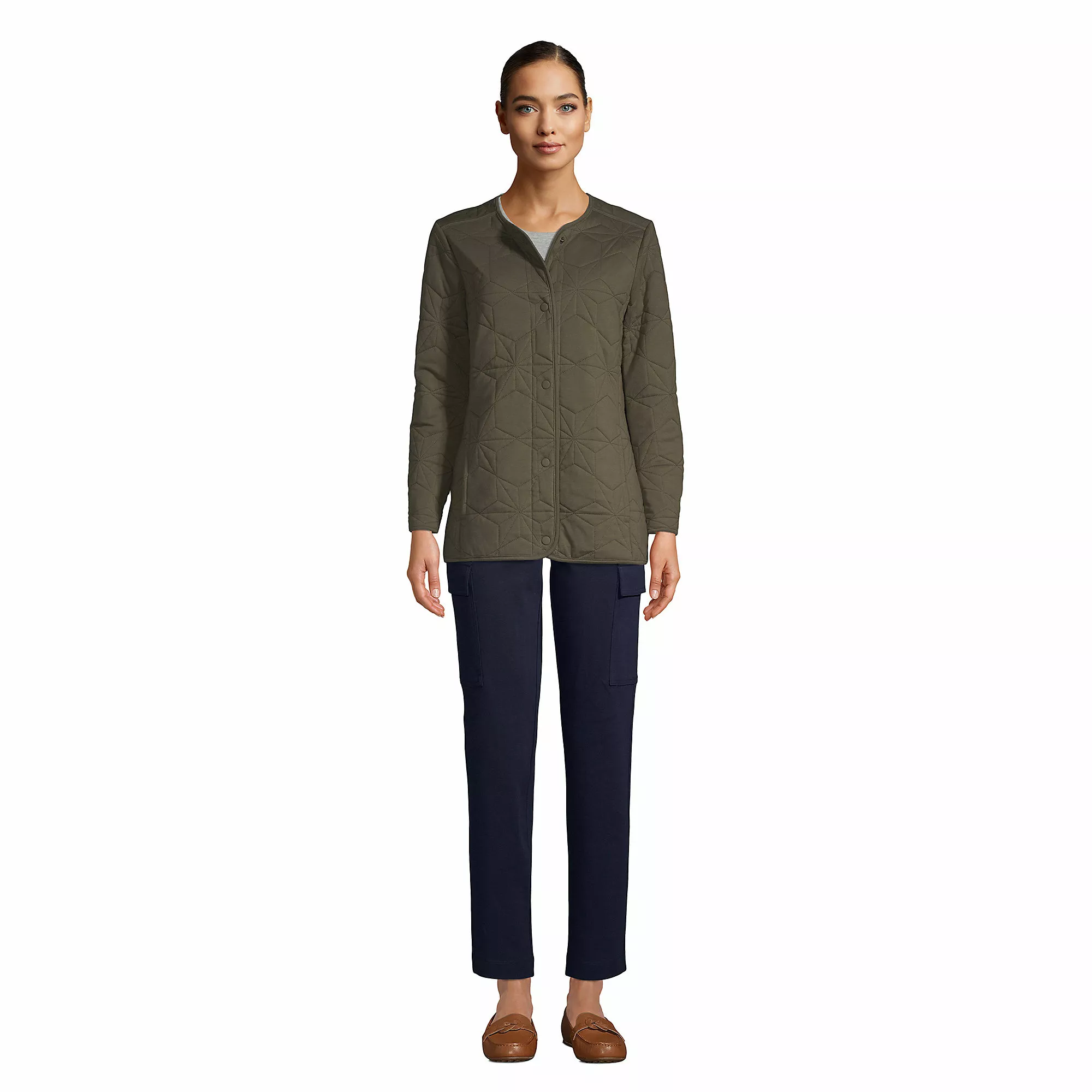 Inspired by the American artisan movement, this quilted jacket is the perfect layer for late winter and early spring. Here’s a polished look featuring a flattering round collar, easy snap front, handy pockets and eye-catching trim. Warmth comes from insulation made with recycled plastic bottles, so this jacket combines craft with comfort that’s easier on the earth, too.