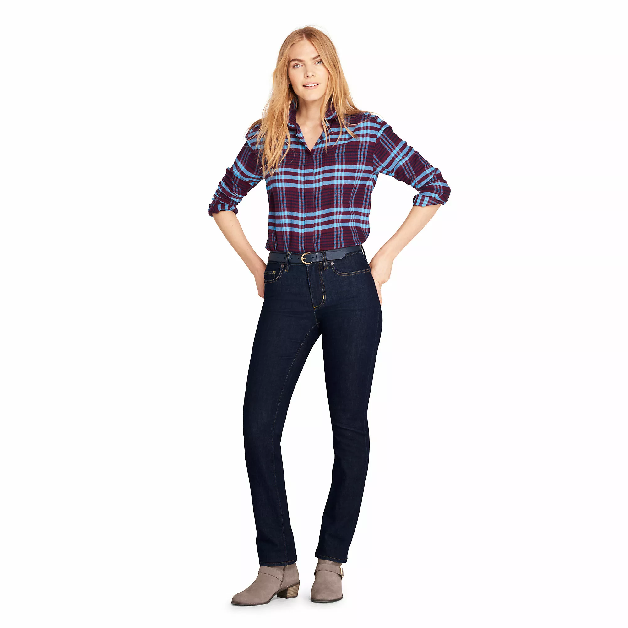 We are so excited about this addition to our Made For You™ fit! Jeans designed specifically for curvy women – with a little more shape through the hip and thigh. We adjusted the waistband, too – so it doesn’t dip or gap in back when you sit. And then, there’s the denim. Super soft, with a little extra “hold and mold” stretch that keeps its shape.