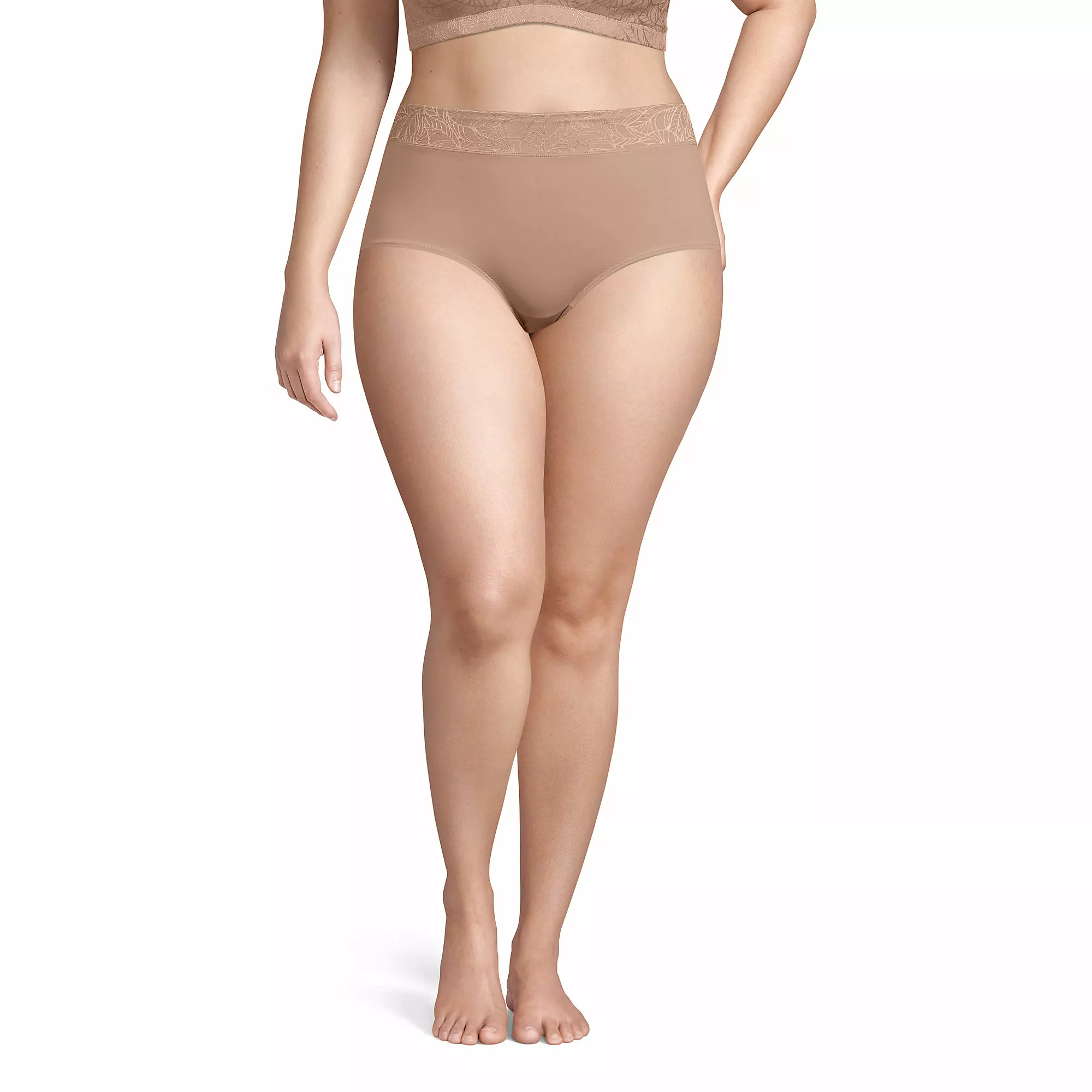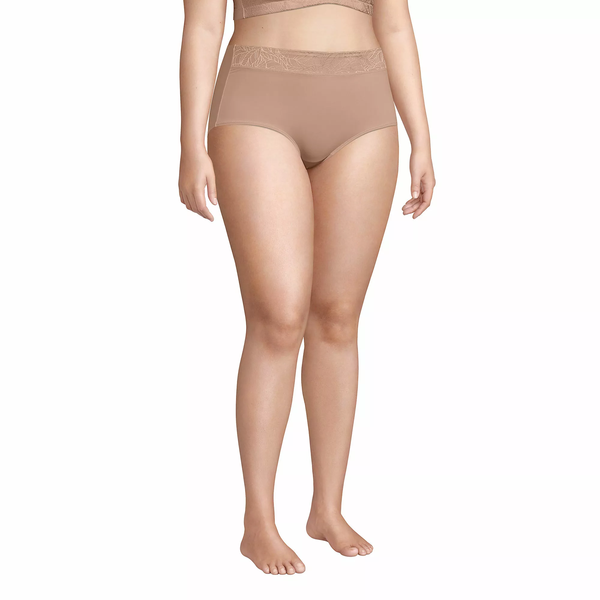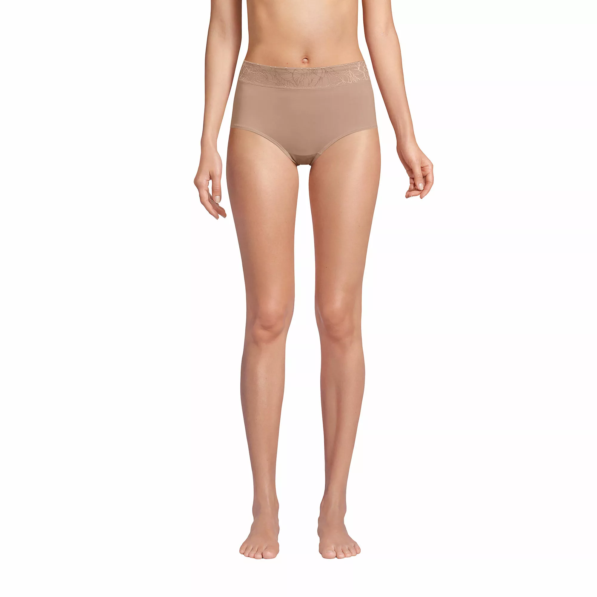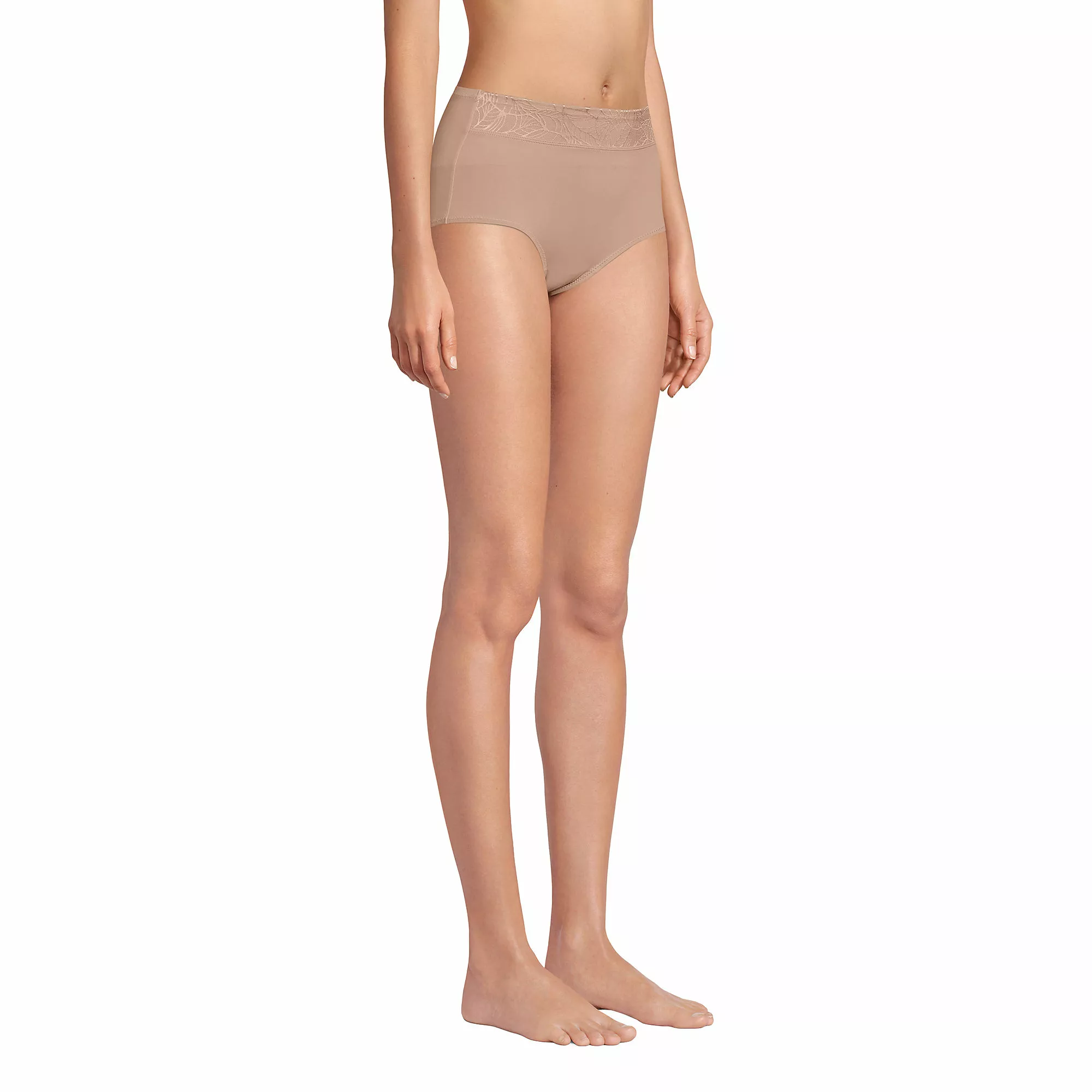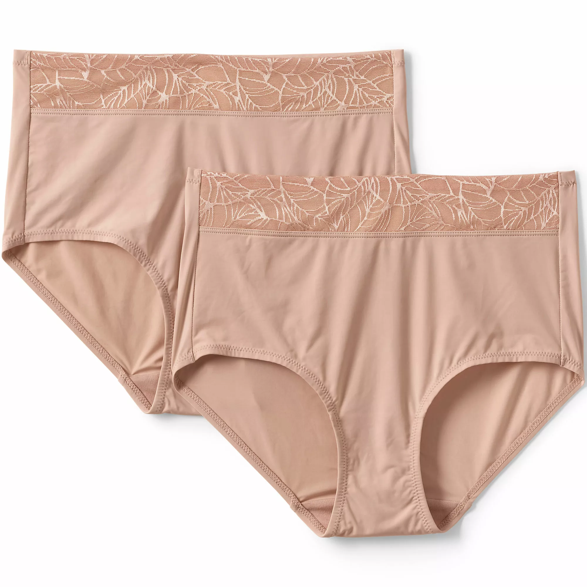 Everyday comfort with an ultra-feminine look. Smooth, silky fabric with stretch for better movement. The wide front jacquard printed band stays flat all day. Comes in a set of two.