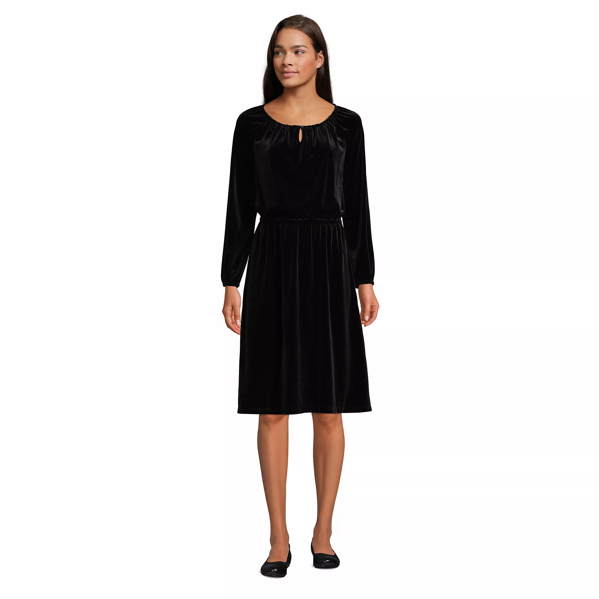 This easy pullover-style dress will have you ready for an impromptu night out at a moment’s notice. Makes for a great backdrop to your favorite necklace, scarf, and accessories. Â