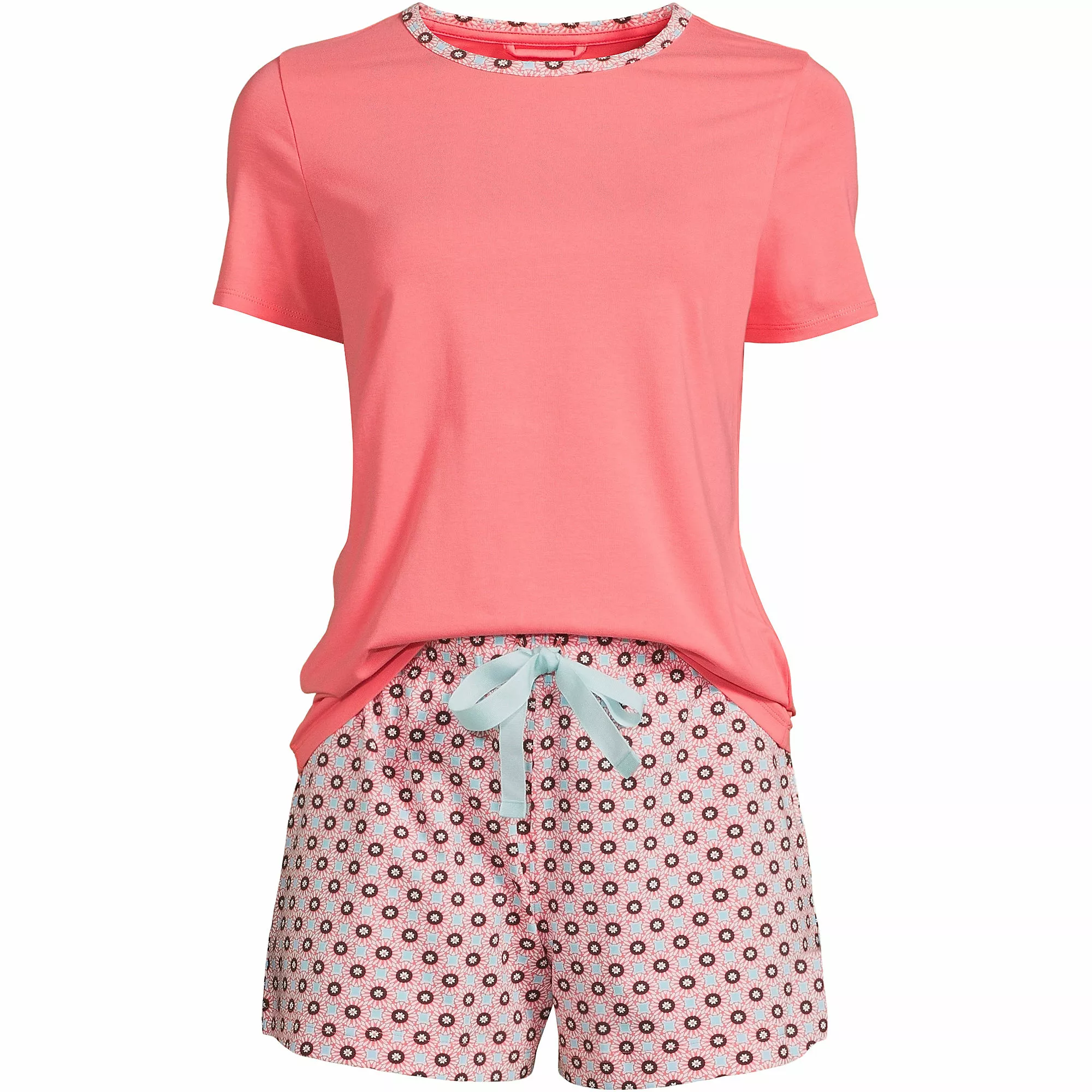 Nothing beats this soft jersey knit in the cutest combos for catching some zzzz’s or weekend lounging. The easy-fitting top has a modest scoopneck with a pretty scalloped detail. And the super-soft shorts (perfect for warmer weather) come in fun prints to complete the cozy set.Â