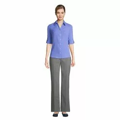Sleeves roll up to elbow length and secure with button tabs for seasonal versatility. Made from a lightly textured fabric that feels very soft and drapes beautifully. Easy care ensures this crepe soft blouse will stay neat and bright wash after wash.Â