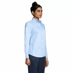 This shirt doesn’t just keep you looking neat and well-dressed through the day, it also keeps you completely covered and confident thanks to innovative No Gape® hidden-button feature that prevents gaping at the bust. The stretch fabric provides comfort that moves with her, and an easy-care finish keeps this shirt crisp after every wash.Â