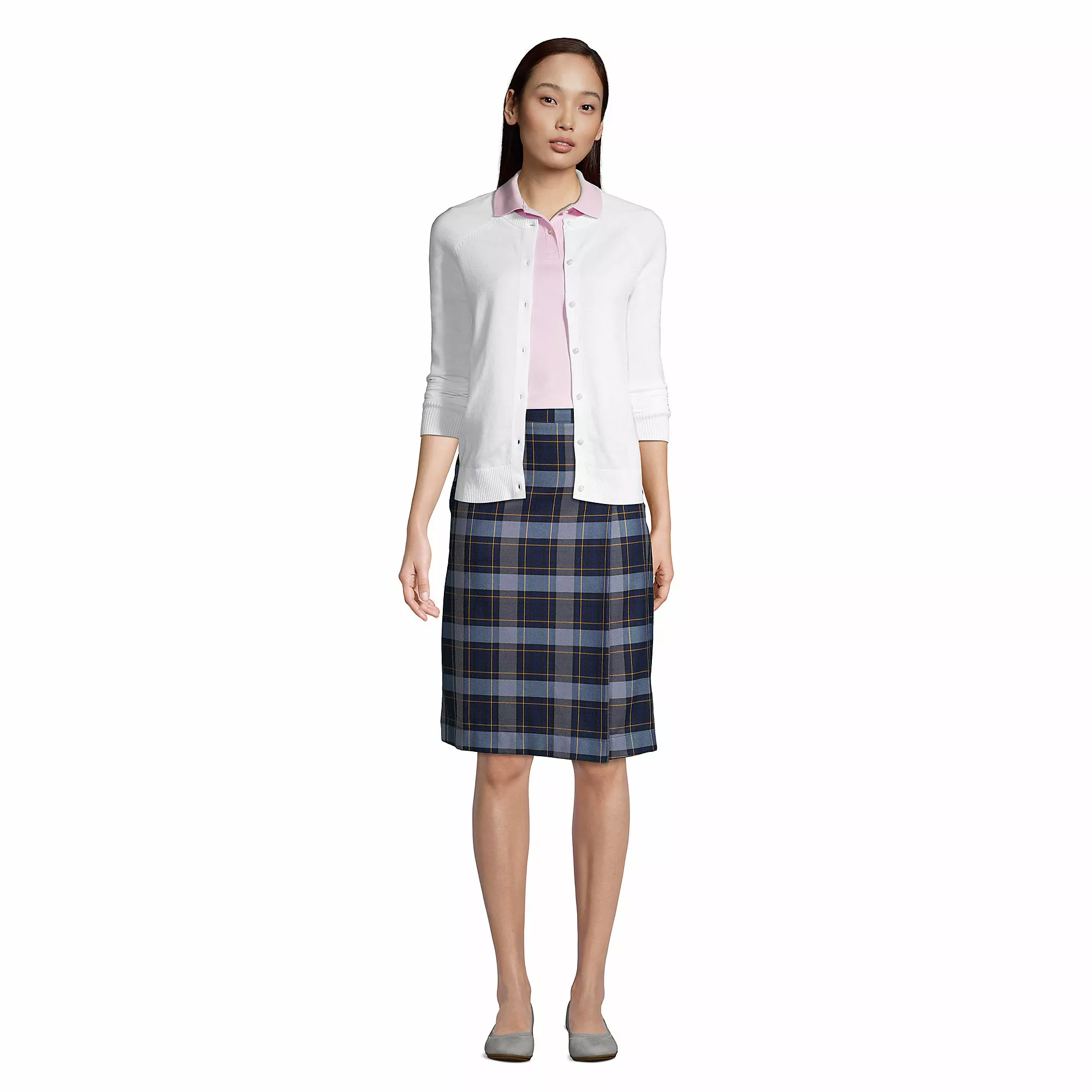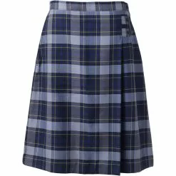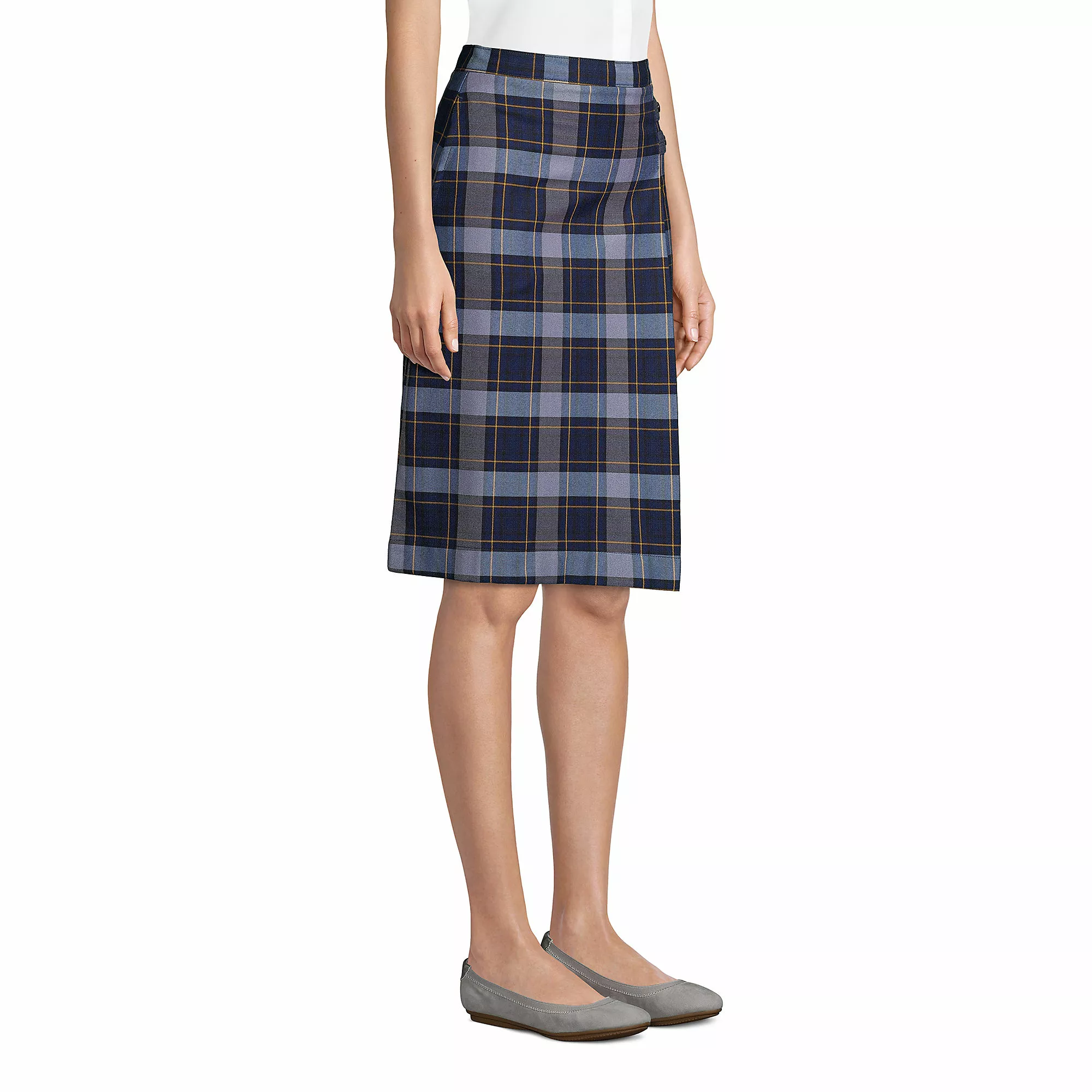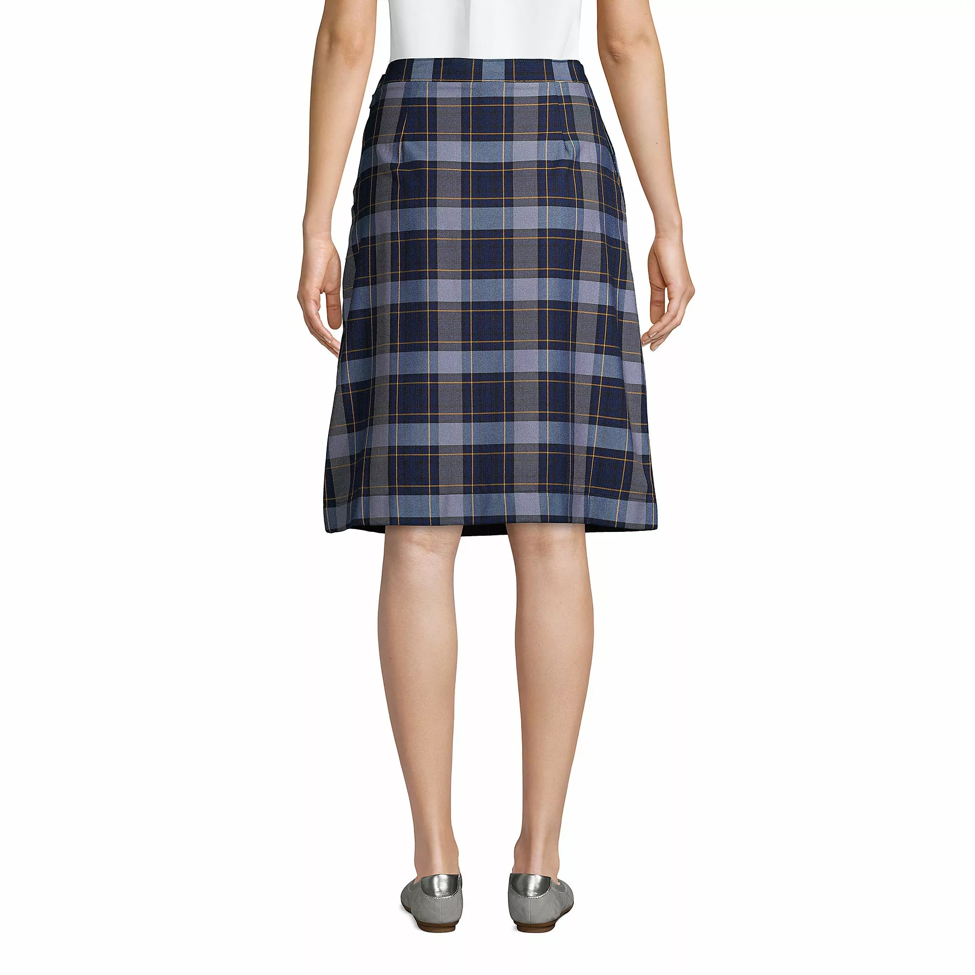 The ultimate classic — a Plaid A-line Skirt — it’s an integral part of the timeless school wardrobe. But you’d be hard pressed to find another with the easy-going comfort of this one. Not only does the smooth polyester/rayon blend drape elegantly, but it also resists wrinkles to keep you looking neat and poised from first class to last bell (and all your activities in between). Button/zip closure at side seam. One right onseam pocket. Below-the-knee length.Â