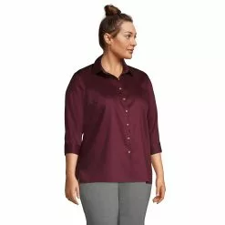 Look fantastic in this all-cotton sport shirt. Just wash, dry and wear. It’s styled for her, with bust darts and shaped sides for a fit that follows her shape. We also gave her a trim straight collar, three-quarter length sleeves and a clean, no-pocket front. The straight hem falls to high hip, with side vents for tuck or “un” tuck options.