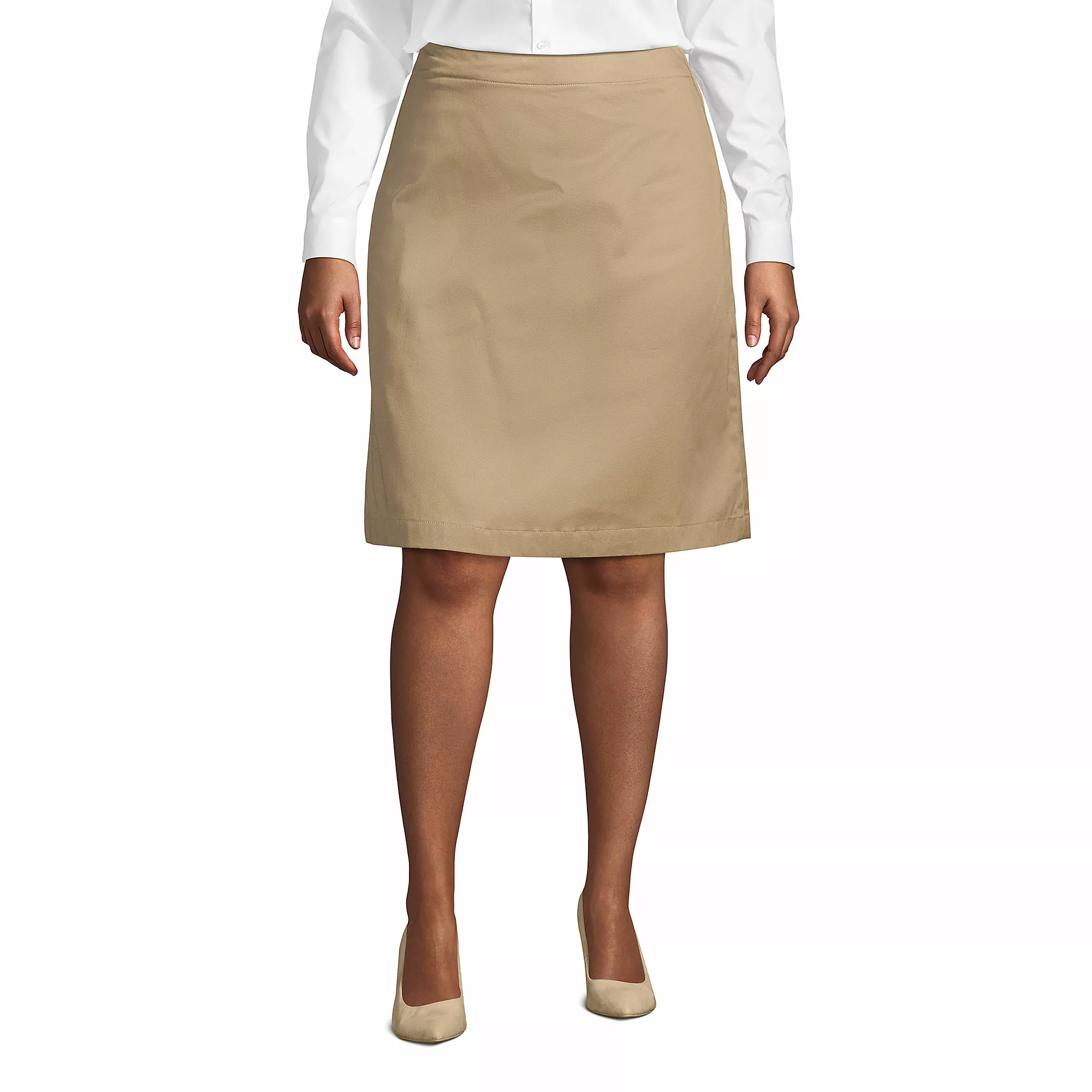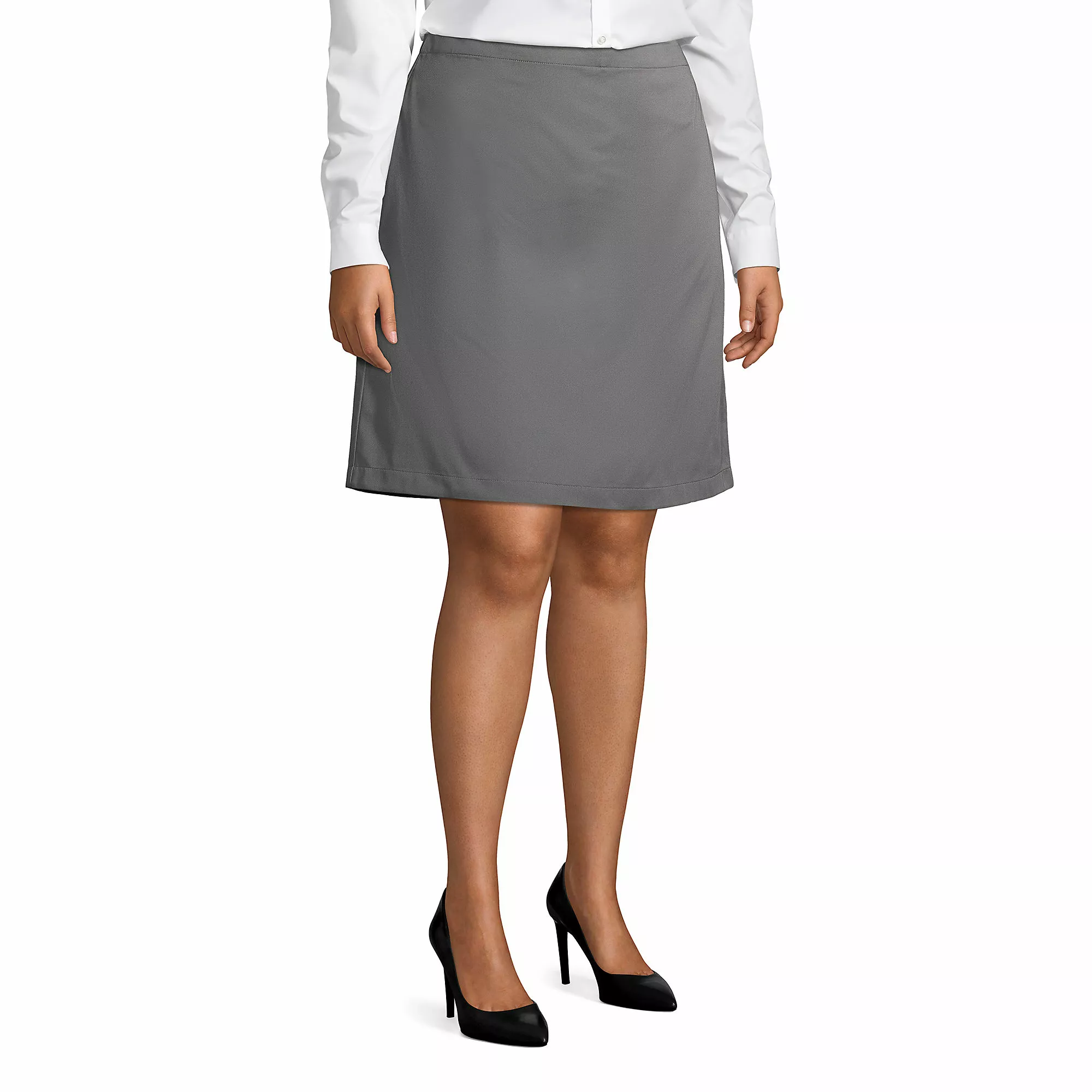 Looks like a skirt all the way around with hidden knit shorts for comfort and coverage. Fashioned with a hidden side-zip entry for a neat appearance in front. In back are darts for a bit of shape and a vent for moving room. Easy-care 60% cotton/40% polyester. At-the-knee length.
