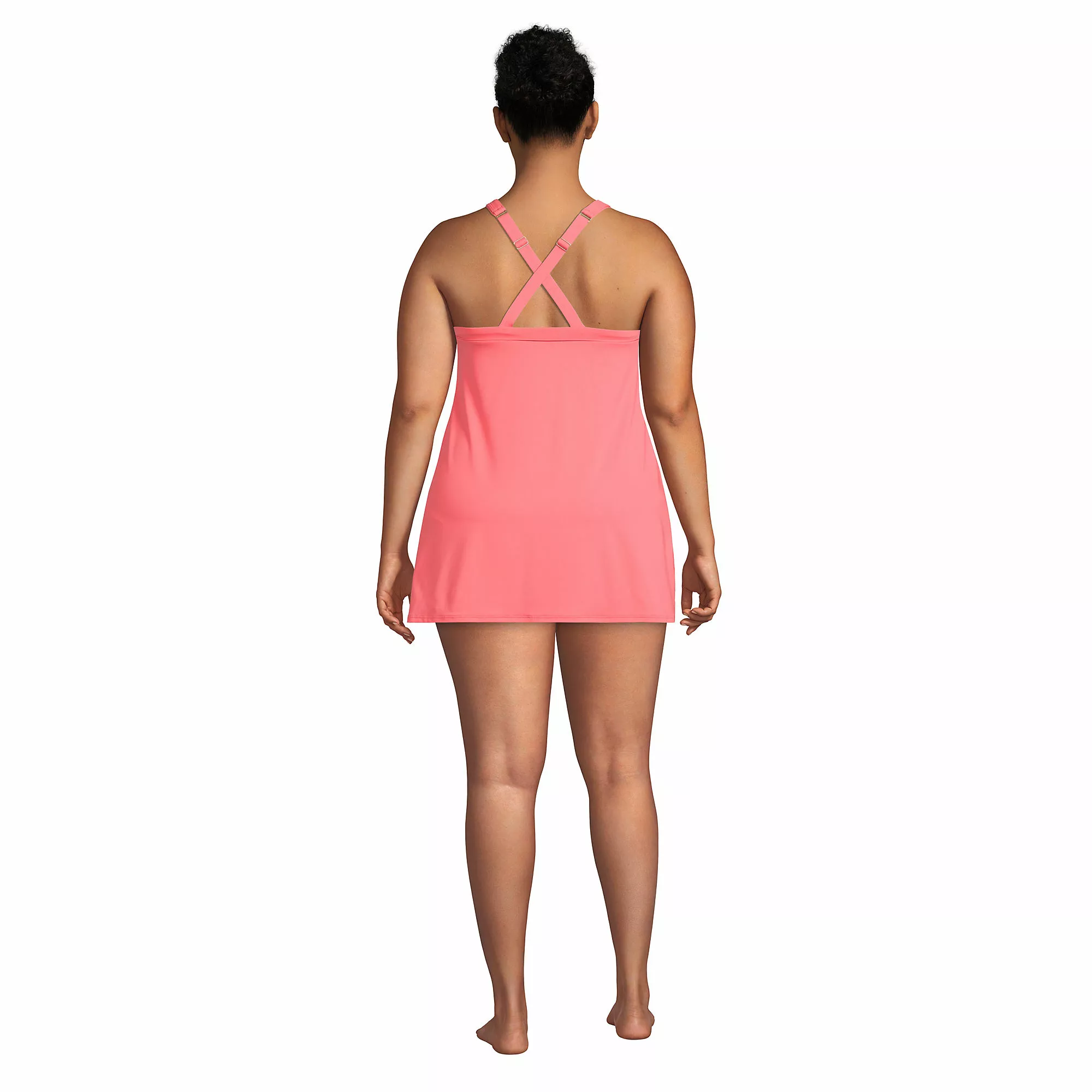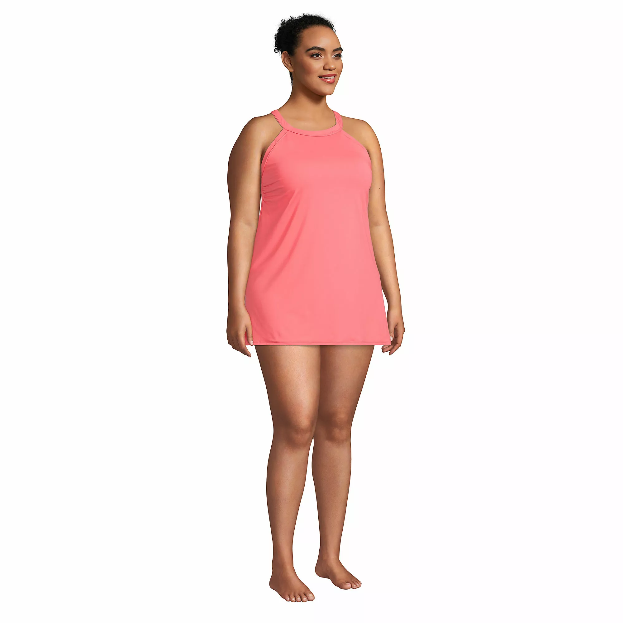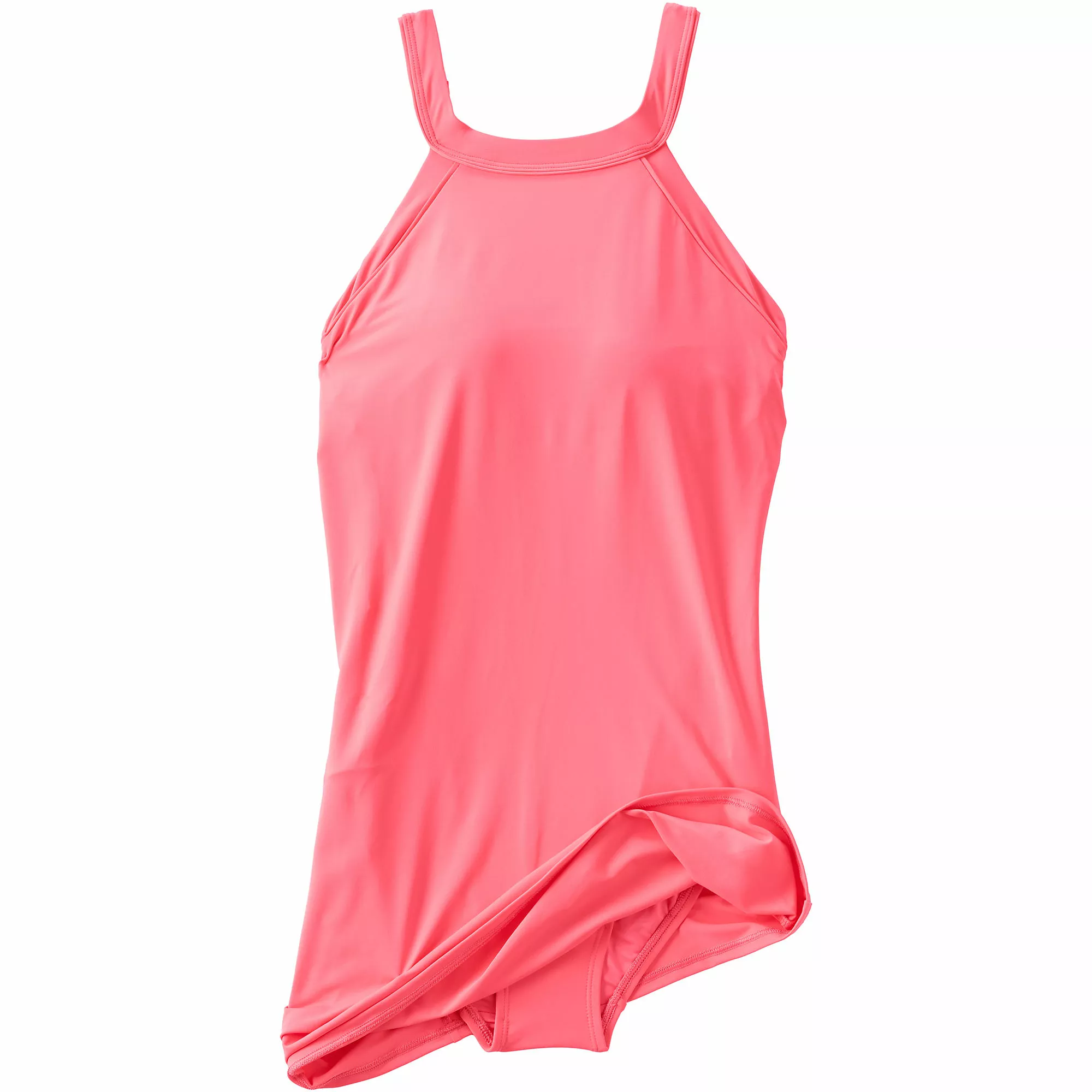 Here’s the swim dress that combines everything we know and love about tunics and great-fitting swimsuits. A high neckline provides sun coverage and puts the spotlight on your shoulders. The flattering tunic length, colorful piping and adjustable straps are perfect finishing touches. Underneath, of course, there’s a comfy, one-piece swimsuit. Plus, chlorine-resistant fabric keeps this swim dress in tip-top shape, season after season.