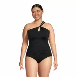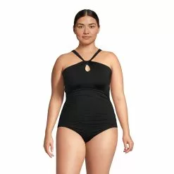 The adjustable straps can be worn over one shoulder or as a halter. Either way, this suit is designed to flatter thanks to the stylish shirring around the midsection. Like the rest of our swimwear collection, it’s made of LYCRA® Xtra Lifeâ„¢ spandex so it’s stronger and won’t lose shape use after use. Plus, it’s resistant to chlorine, sunscreen and sweat, and with the built-in UPF 50 it’ll keep you protected from the sun. Â