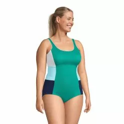 Tugless Tank is the swimsuit that lives up to its name — and then some. Famous for its fuss-free fit, it won’t ride up or shift out of place. The simple scoop neck design is flattering yet modest, with eye-catching piping and vibrant color blocks. And thanks to LYCRA® Xtra Lifeâ„¢ spandex, your suit is guaranteed a longer life. This amazing fiber resists breaking down even after repeated contact with every day elements that are hard on your suit – chlorine, sunscreen, even the sun. So your suit lasts longer and retains its gorgeous shape.