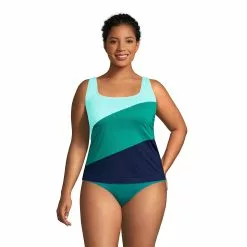 Bright, bold color blocking is the star of this square neck tankini top — an anchor for your swim wardrobe. Its neckline is simple, yet universally flattering. Women of all shapes and sizes sing its praises. Chlorine resistant fabric helps keep its shape season after season and UPF 50 protects you from harmful rays in and out of the water.