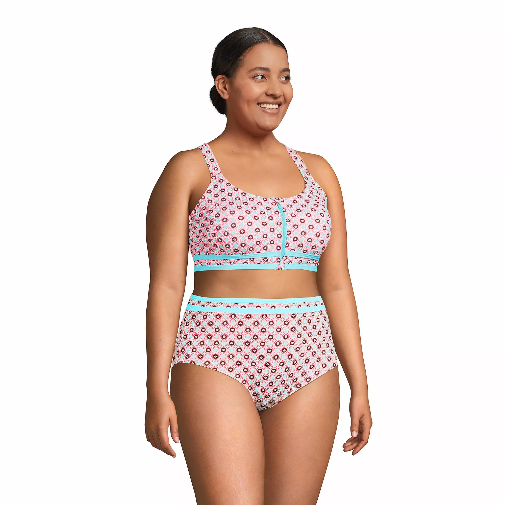 Trending: Zip-front swimwear with a modern, sporty vibe. This is Lands’ End, after all, so this zip-front bikini top has a hidden clasp, too, for extra security. Plus, comfy adjustable straps and a bottom band for a little extra support. The finishing touch: chlorine resistance that helps this bikini stay in top shape season after season.
