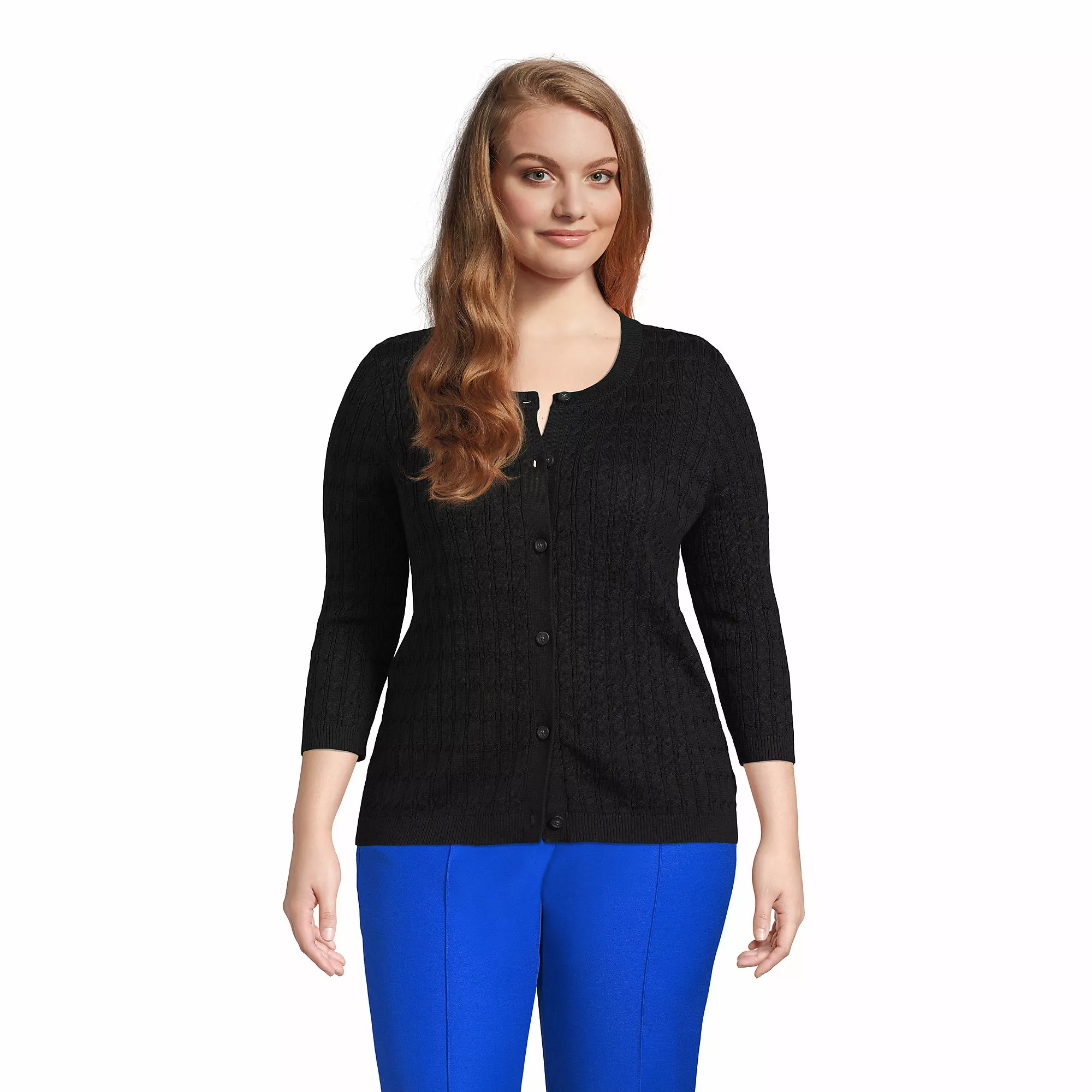 There’s a lot to love about this cardi. For one thing, it’s covered in rich cables from top to bottom, harkening back to time-honored tradition and placing it firmly in the professional realm. We even make it the “old-fashioned” way, linking each separately knitted piece together for a flattering shape and comfy, easy-layering fit. The yarns, however, deliver an innovative blend of cotton and rayon modal for long-lasting softness and easy care.