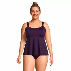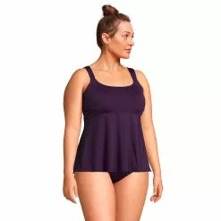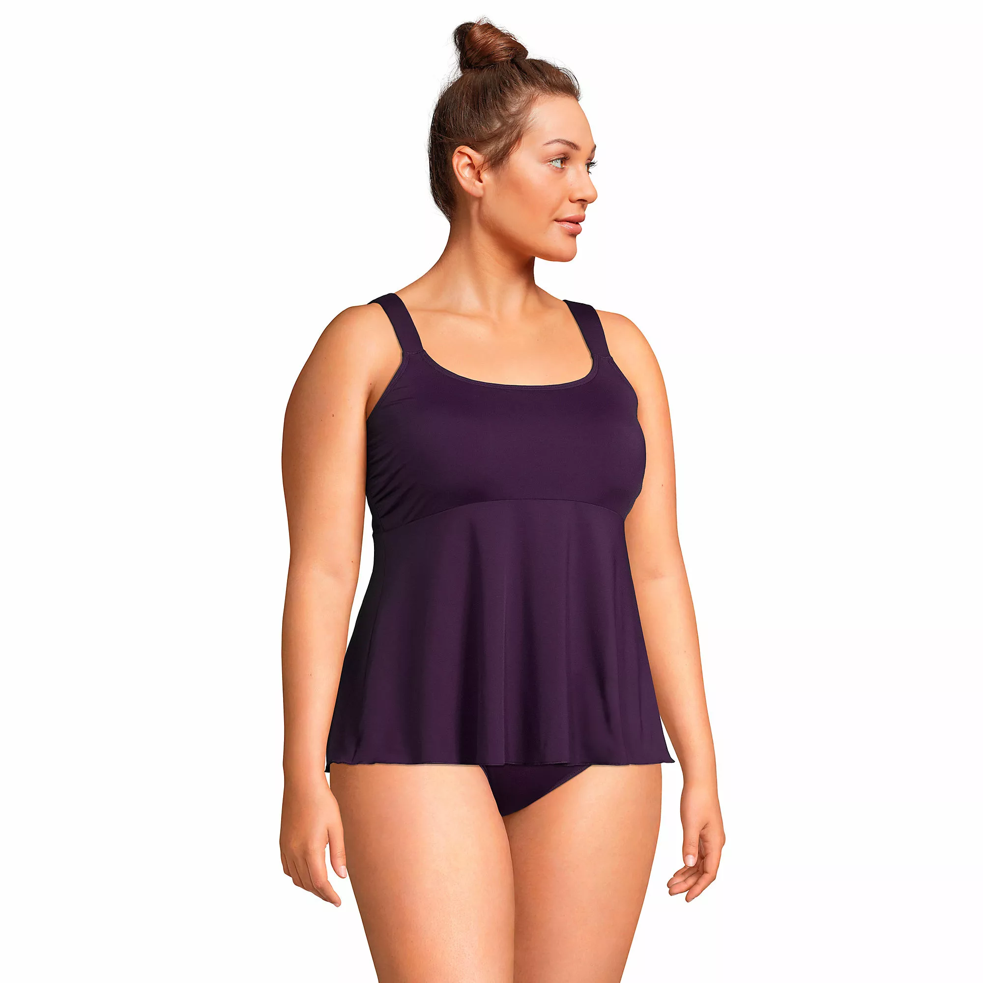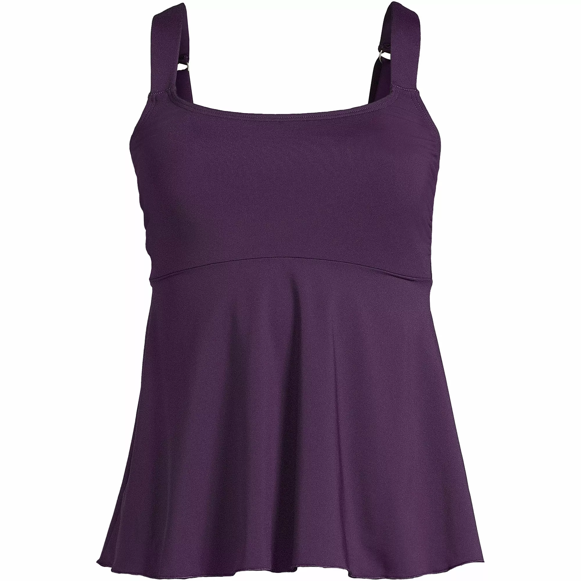 A looser-fitting top, this flutter tankini is flattering and comfortable, with padded shoulder straps that adjust to provide a better fit (no more digging in!). The seam sits comfortable under the bust, and the all-around bra with soft cups helps gives you support. And how cute is that flutter style?