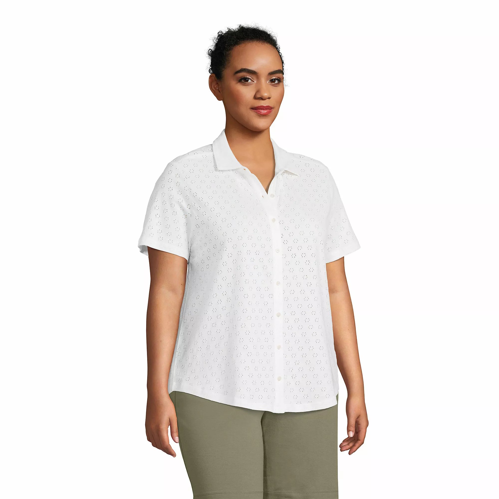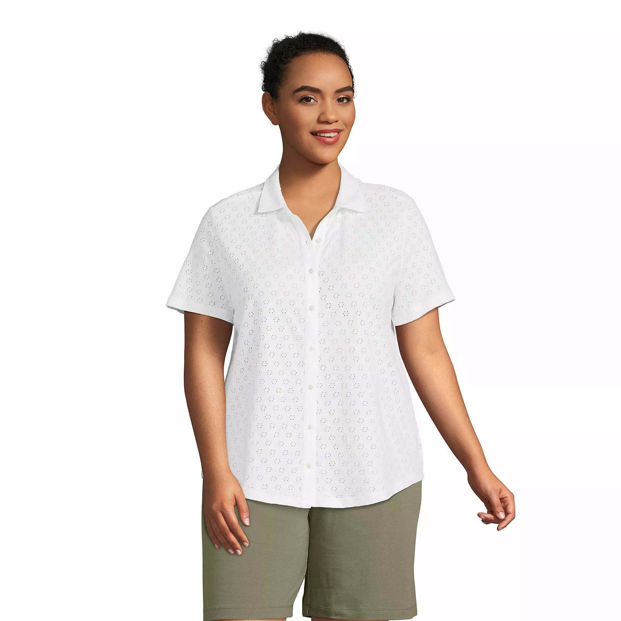 A shirt like this is great to have in your rotation. It has all the features you love about a short-sleeved button down, but this one has a little extra flair all thanks to the knit eyelet design. It adds just enough interest to make it feel like a patterned shirt. Plus, the elbow sleeves are great for warmer weather, and make it easy to layer if needed. It’s the kind of style that works well tucked in for a polished look or untucked for a more casual appeal.
