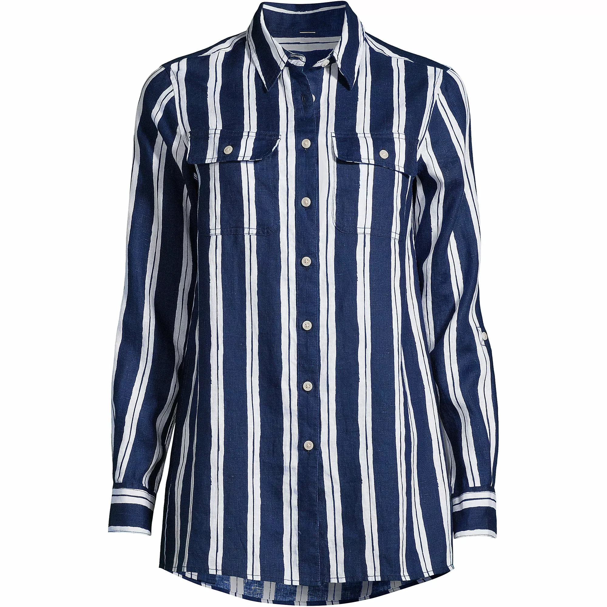 Versatility is the defining feature of this utility tunic shirt. Wear the sleeves full length when it’s cooler (they have neatly-finished cuffs and sleeve plackets), then roll them up when it’s warmer. The already light linen fabric will only get softer with time. This shirt is a great all-around top on its own, but it matches flawlessly with your jeans, leggings, shorts and skirts.