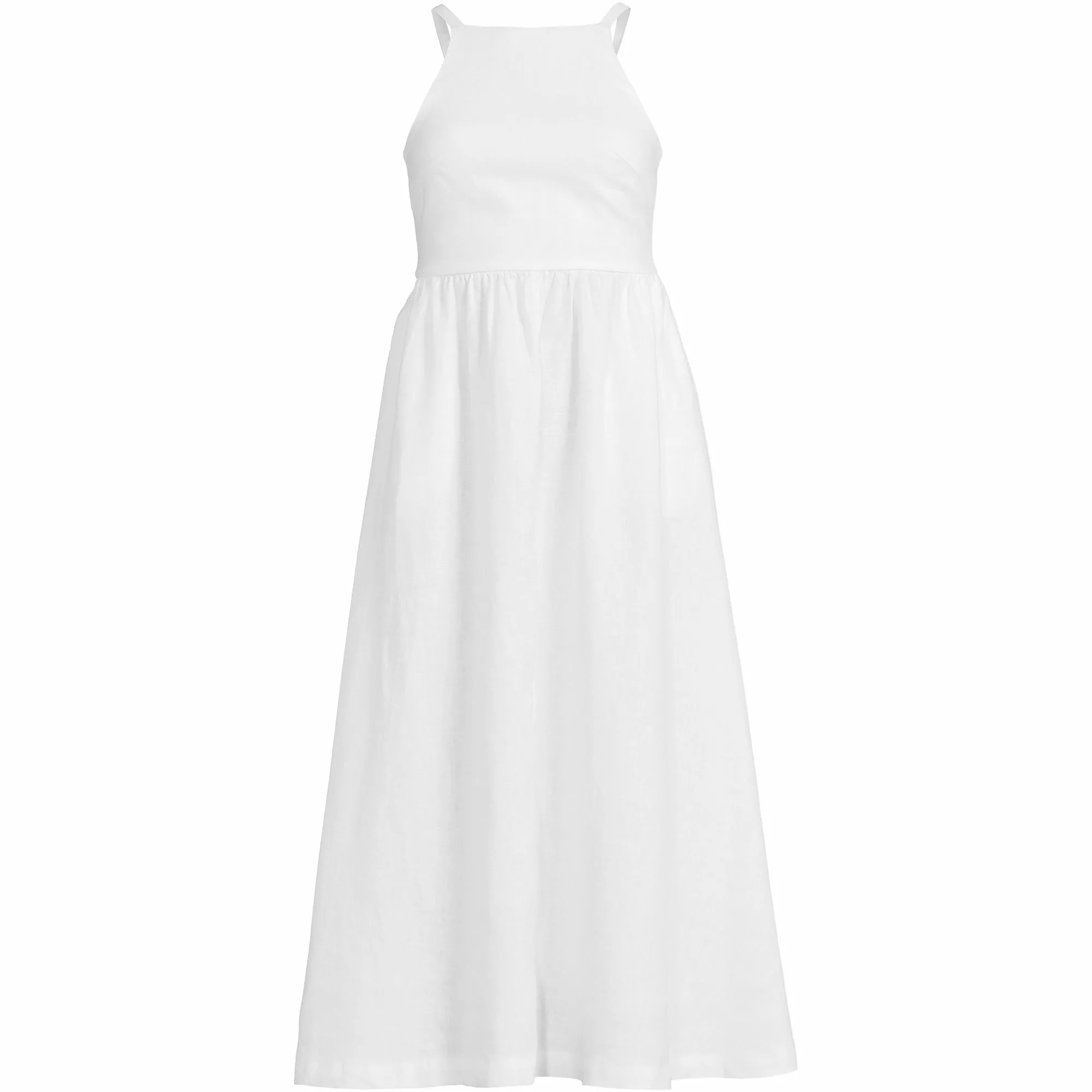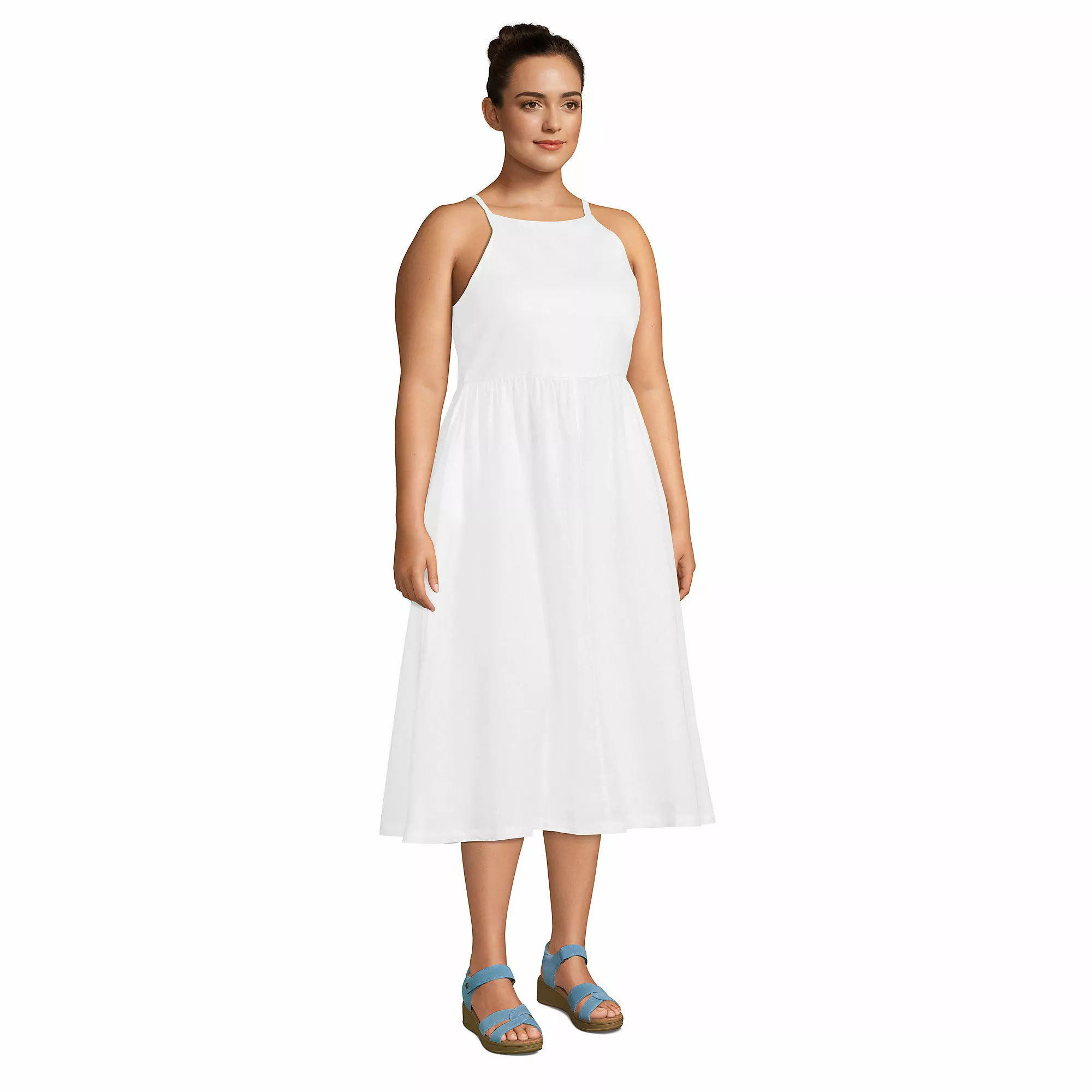 This classic midi length silhouette features a modest high neck with a fully lined bodice and back rouching that comfortably hugs and supports your bust. The shoulder straps can be adjusted for the perfect fit and the two side pockets are ideal for storing essentials like a credit card or your keys. Dress it up with a pair of heels for a dinner celebration, or dress it down with flats and a denim jacket for a casual stroll in town.