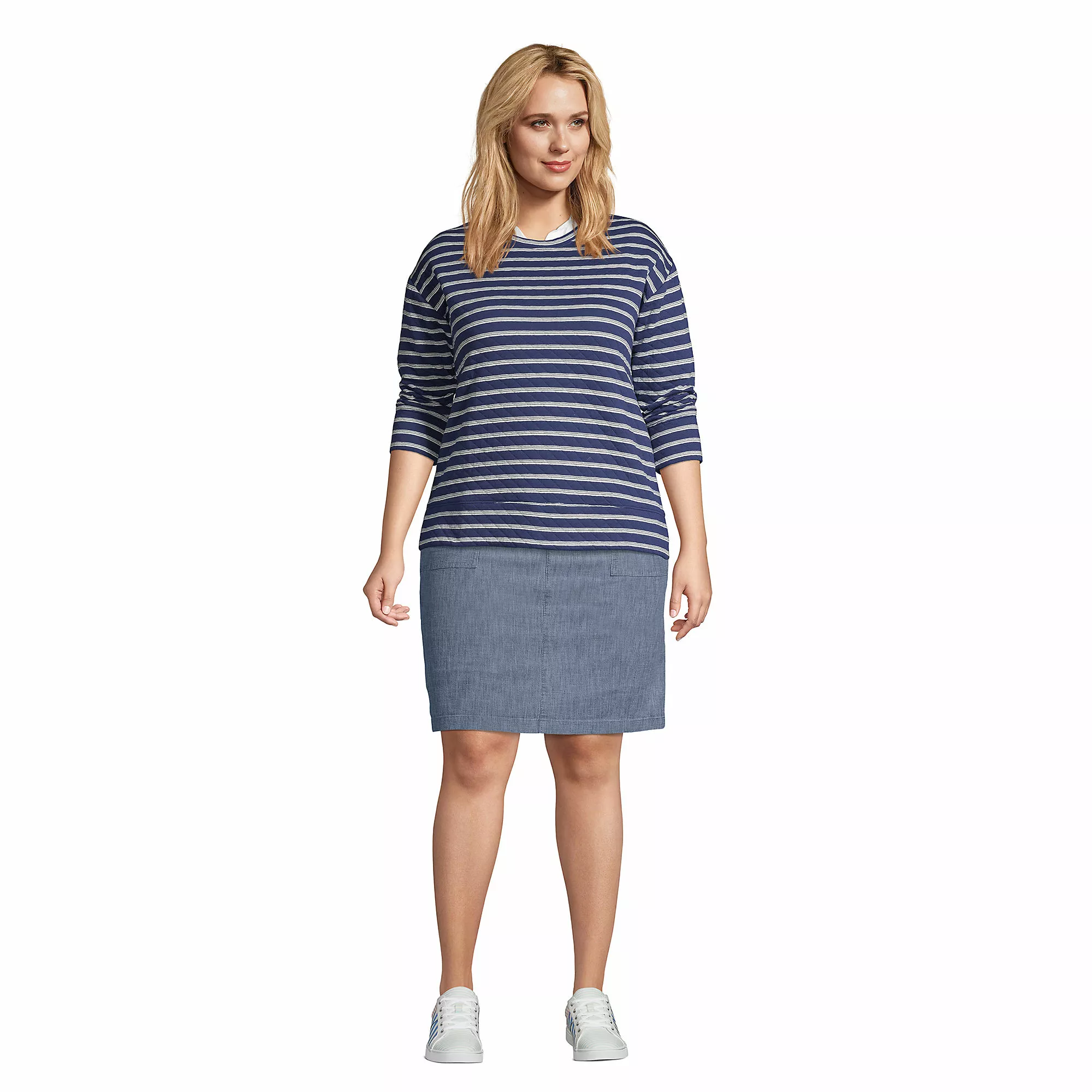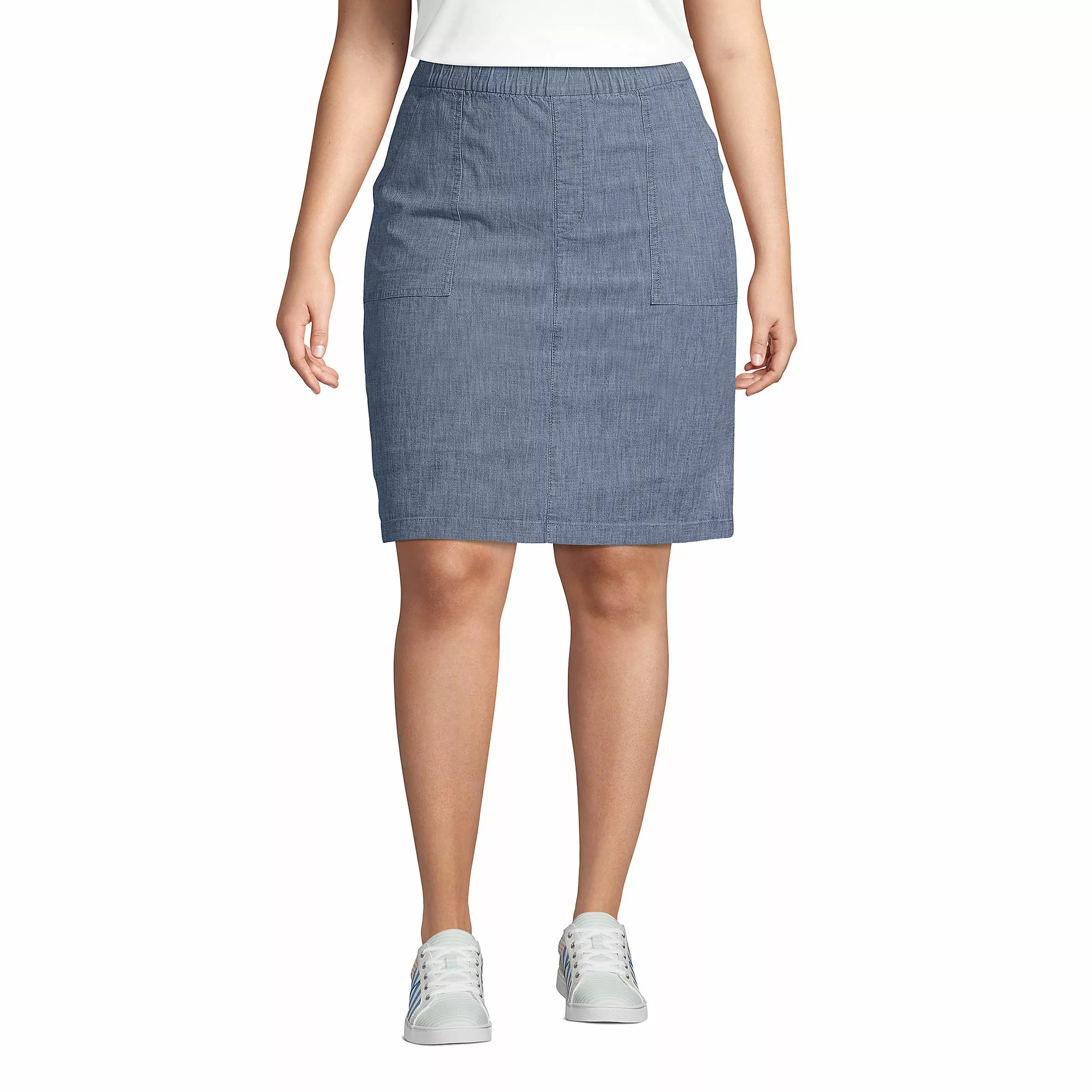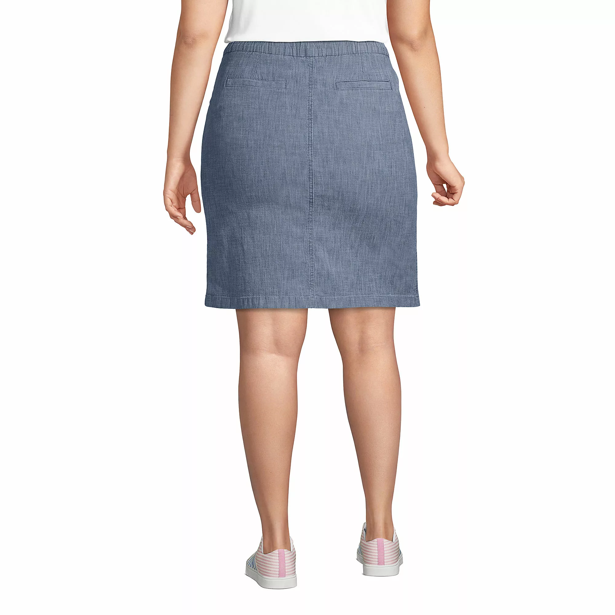 Who says adult women can’t wear skorts? Not us! They give you the best of both worlds – the look of a skirt, the comfort of shorts. Talk about total coverage and confidence. And this is not your average jean skirt because it’s in fact chambray and not denim, so it’s more lightweight and breezy for warm weather. Plus, it pulls on, there are no snaps, buttons or zippers to get in the way. Extra bonus? The POCKETS! Both front AND back, yay!