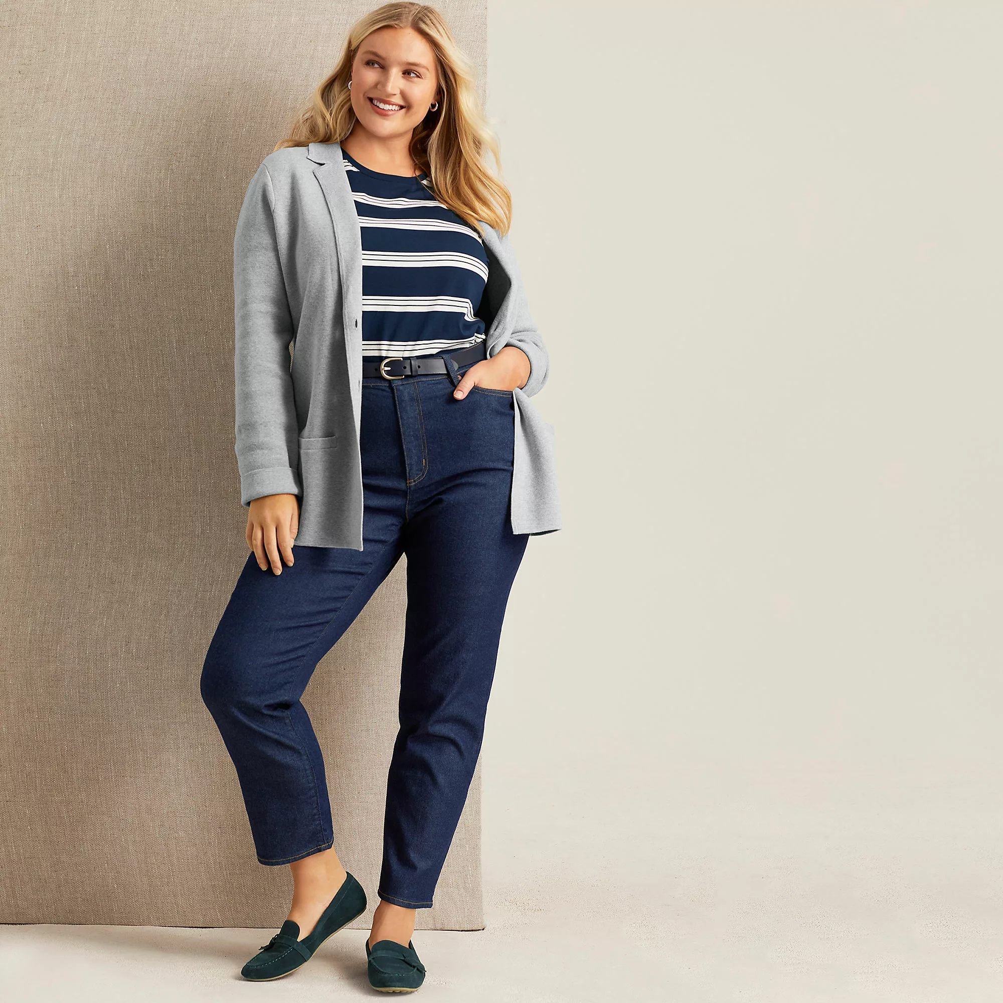 These may look just like our fan favorite high-rise, straight-leg jeans you know and LOVE, but there’s a much deeper story here. A feel-good story where we’re putting our best foot forward toward a greener earth and better future. How? Recoverâ„¢ denim. What does that mean? Well, it means that using just 20% of Recoverâ„¢ recycled cotton fiber to make just one pair of jeans will save enough water to amount to 23 showers or one year of drinking water. How does it work? Recoverâ„¢ denim uses liquid indigo vs. traditional indigo dying, which amounts to huge water savings. So, not only will you look great rocking these just-right-fit jeans, but you’ll feel even better helping the environment one pair of jeans at a time. P.S. The faux leather patch is even made out of sustainable apple skin … how cool is that?!