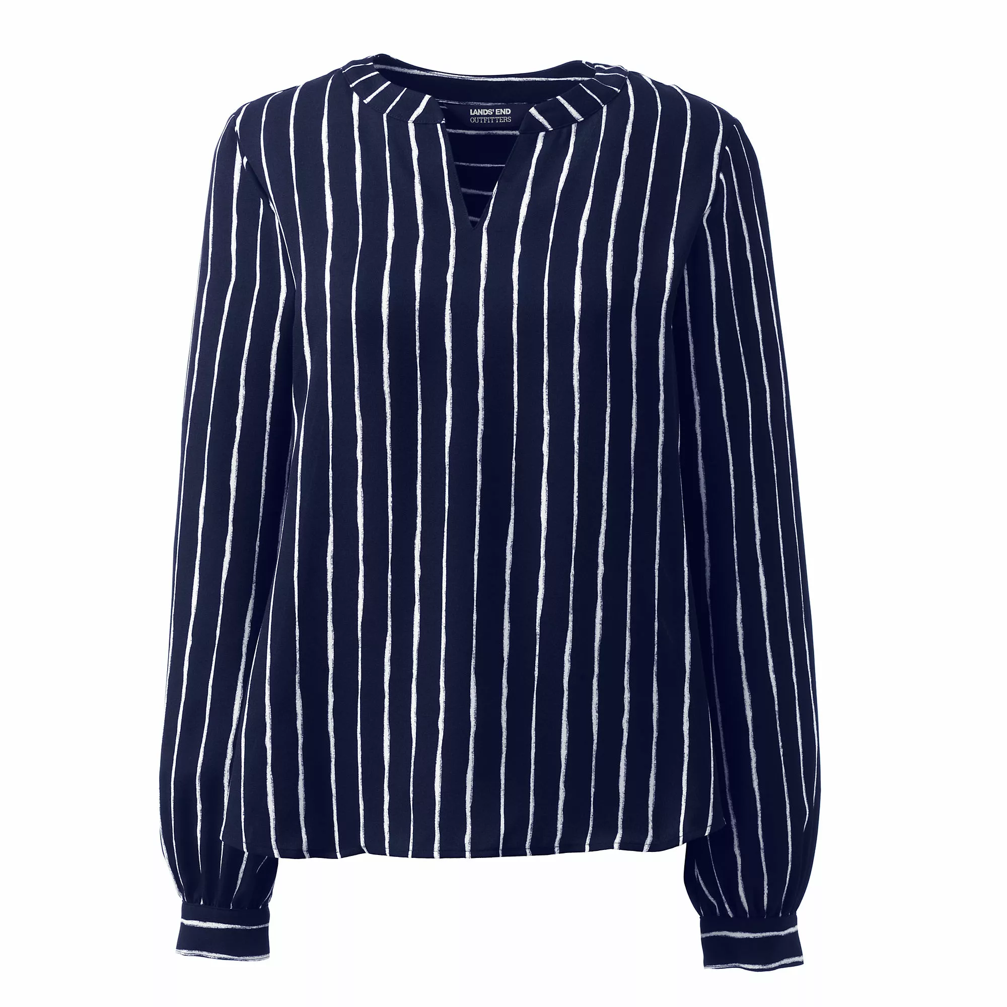 Choose this blouse in the morning and you’ll be neat and comfortable throughout the day. It’s made from a soft crepe fabric with a fluid drape that looks beautiful. It’s also easy to care for, and will hold on to its rich color.Â