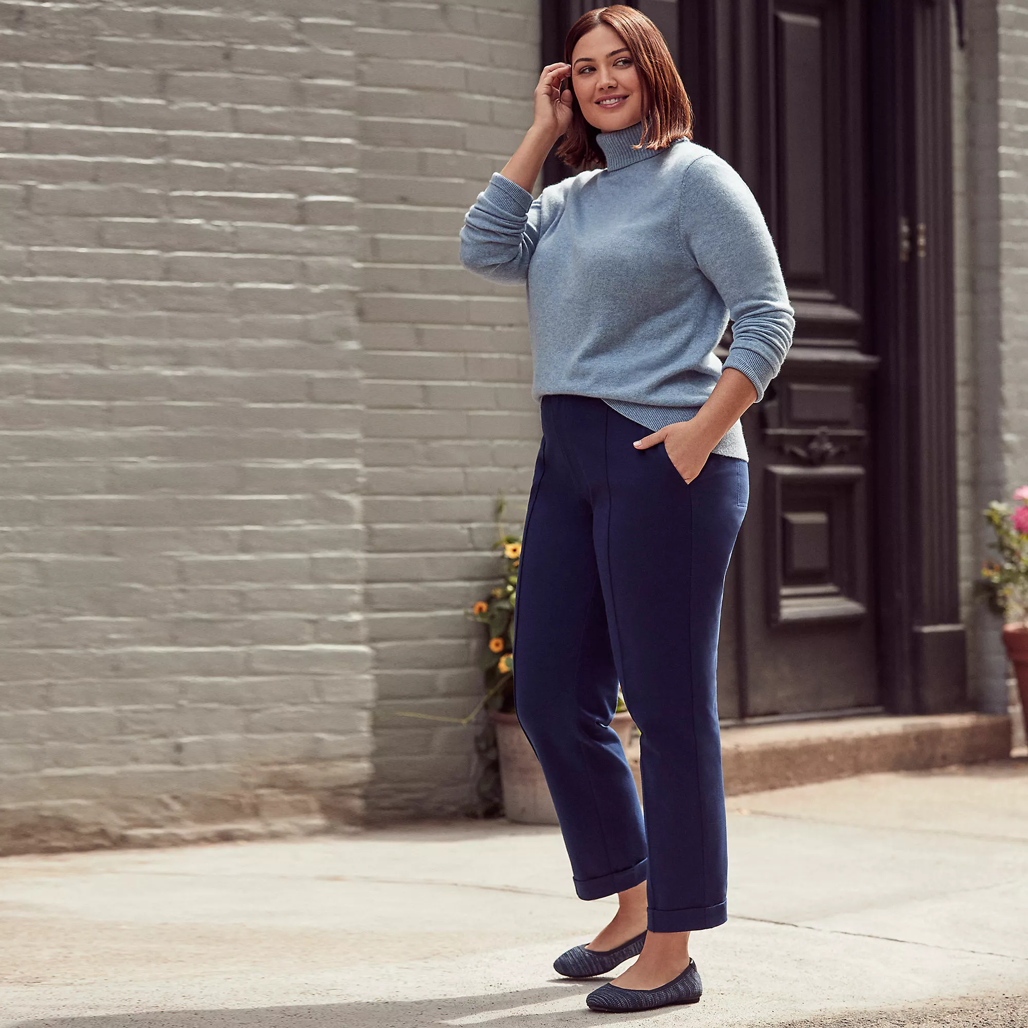 They’re whatever you want them to be, wherever you want to wear them! Even better? They’re knit! So they’re soft, stretchy and pull on. But they still have a button and zipper fly, plus front and back pockets, too. They’re everything you could want in a pair of high-rise, straight-leg pants and more. The and more? We added a subtle pintuck detail and cuffed the hem for an extra touch of sophistication.