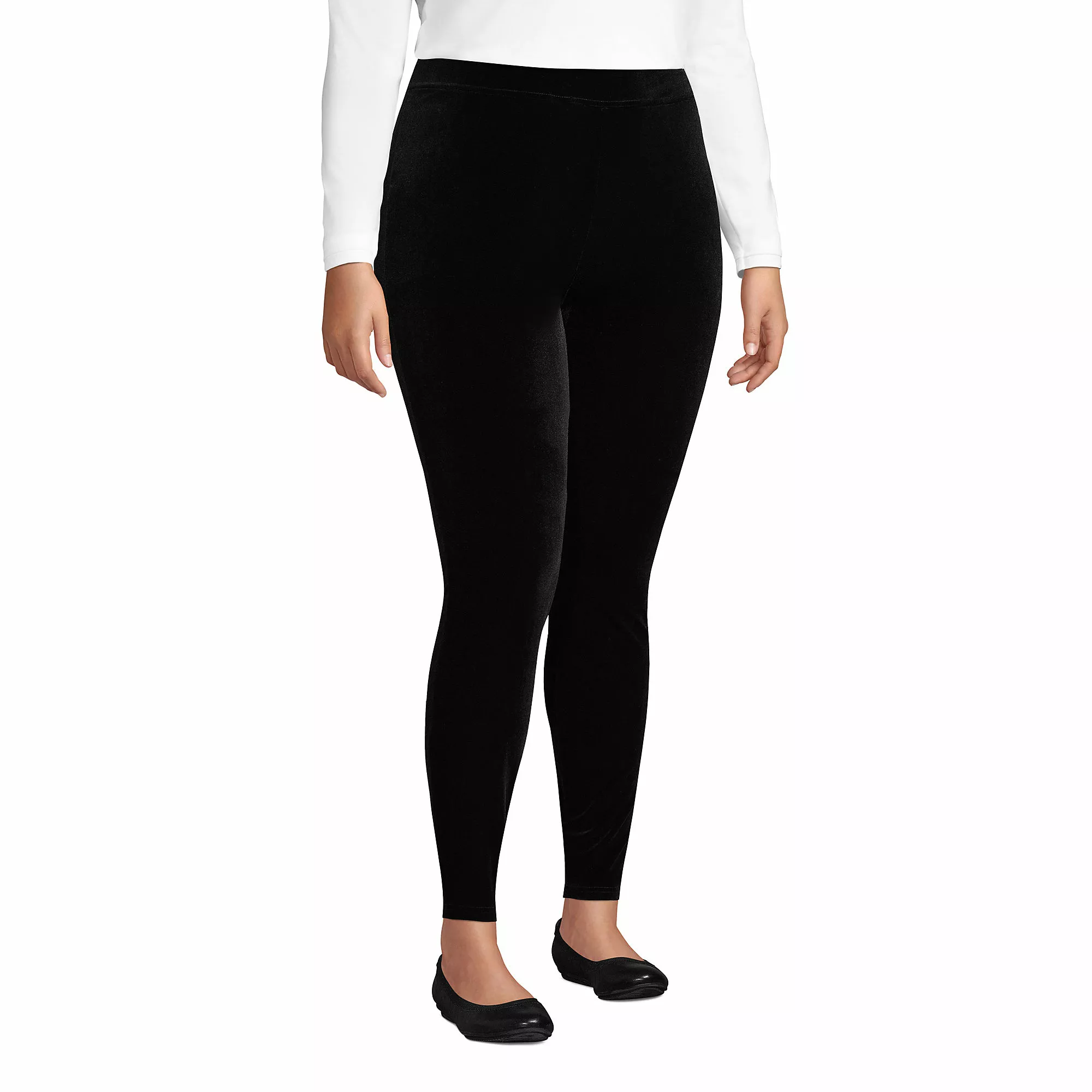 A mix of comfort and smart fashion. Soft, shape-keeping velvet offers a slim look. Wide, full-elastic waistband is designed to lie flat and smooth. These leggings are an easy choice when you want to look festive, comfortably.